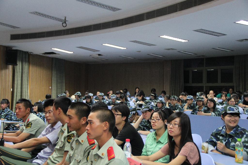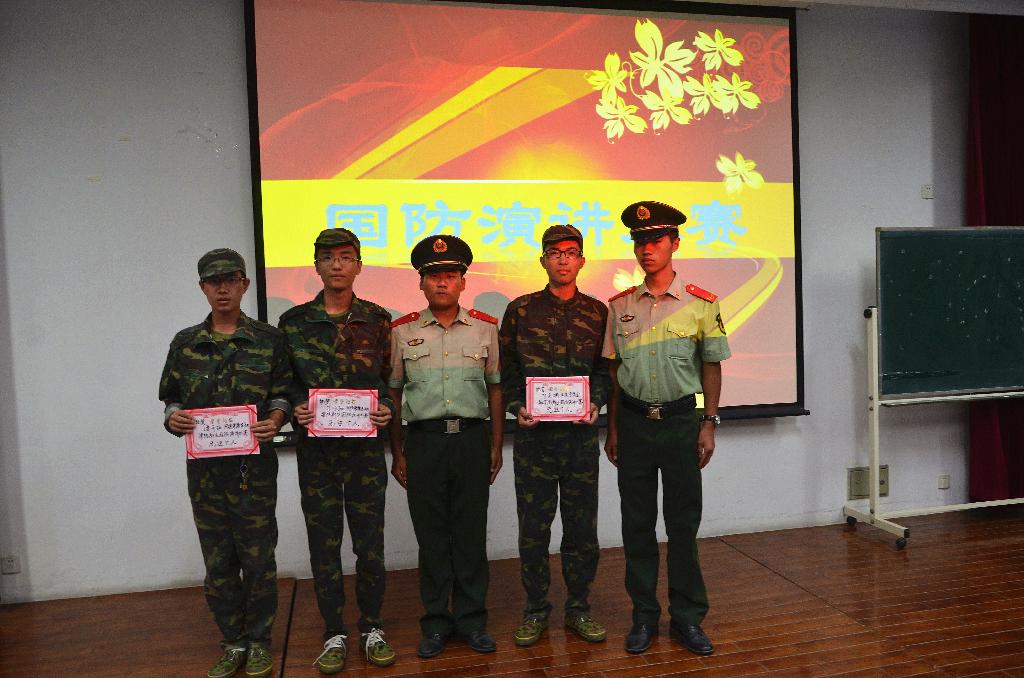2013届新生军训国防演讲比赛在A101、A201教室顺利举行。本次比赛到场的嘉宾有三营营长刘超中尉,辅导员尹怀玉老师,各排的教官们以及来自酷爱成人网