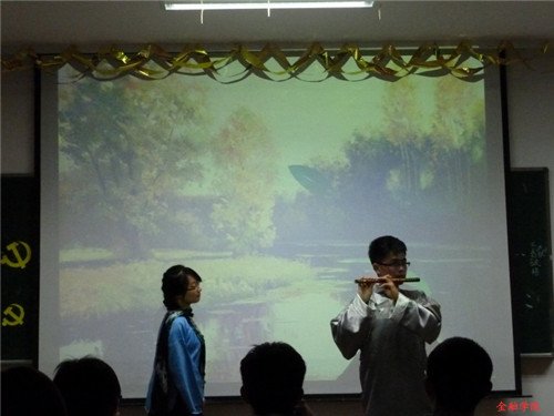在开场白后,各个学生党支部带来了生动的表演,为现场观众送上了一场异彩纷呈的视觉盛宴。08金3的《拿什么拯救你,我的英雄》再现了江姐对丈夫、对组织、对国家热情而真挚的爱,感染了现场的观众;08金工的《白毛女》另辟蹊径,以新颖独特的视角诠释了喜儿、杨白劳、黄世仁等角色,借杨白劳之口展示“做人要厚道”的主题,全场掌声连连,笑声不断;08信管富歌声、朗诵、表演于一体,展示中共一大、新中国成立、长征到改革开放、邓小平南巡等党在不同历史时期的活动,加深了大家对党的认识。