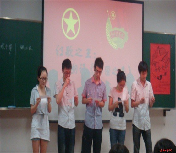楼204教室红歌嘹亮、诗声朗朗。为迎接中国共产党90周年华诞,调动团组织和青年团员积极向上的精神面貌,08金融2班团支部在此举行“青春·使命”主题团日活动。