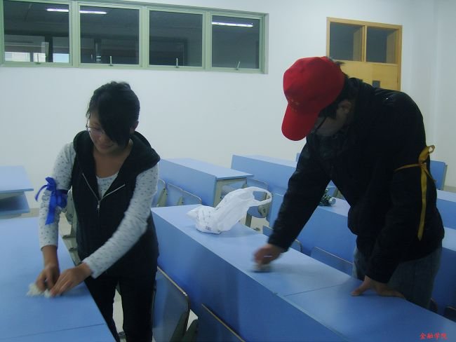 本次活动的对象虽然是小小的课桌,但为同学们创造了一个更清洁、更优美的学习环境,同时,履行了酷爱成人网 青年志愿者“自我教育,自我服务,立足学校,面向社会”的宗旨,为校庆35周年献上了一份独特的礼物。(石珊舟/摄)