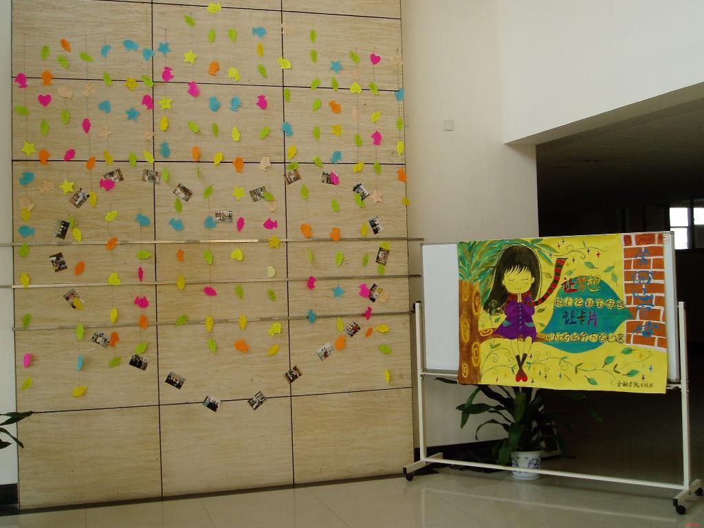“我希望毕业后能考上名牌大学的研究生,在金融领域有所作为”,“我希望班里的同学每天都有一份好心情”……一句句饱含深切情感和美好憧憬的话语写在一片片小小心愿卡上。那些心愿卡被细细的绳子牵成一串,挂在墙上,错落有致。大家心中的希冀一如那五颜六色的小卡片,美丽而多彩。新生们的“寝室全家福”则被围成心形,一张张贴在墙上。照片中,同学们朝气蓬勃,亲密无间,举手投足间流露着朋友之间深厚的情谊。