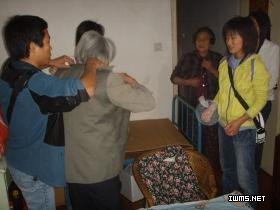 学生会组织干事与志愿者,利用节假日前往江干文皇庙社区慰问了困难退休老人。