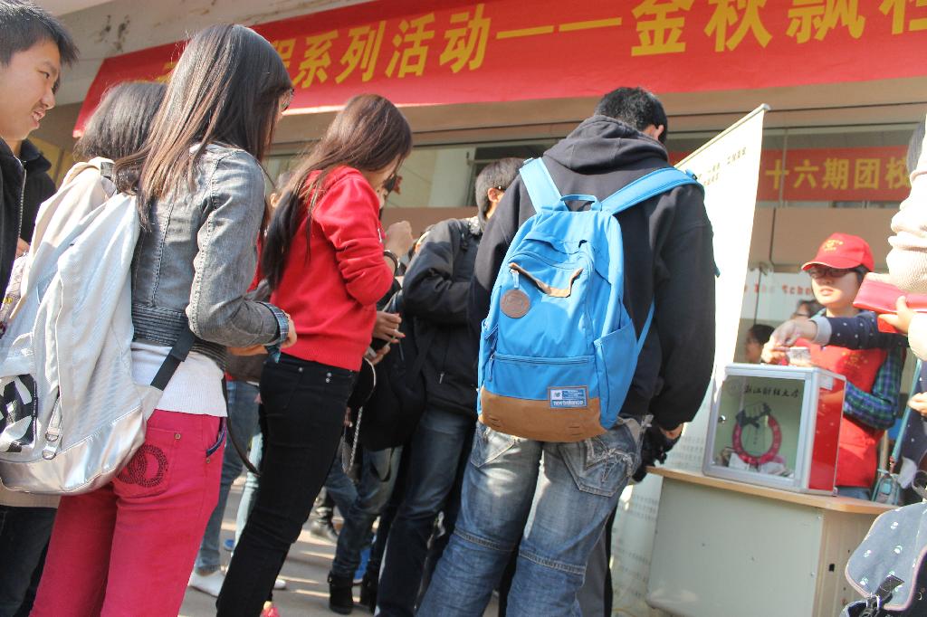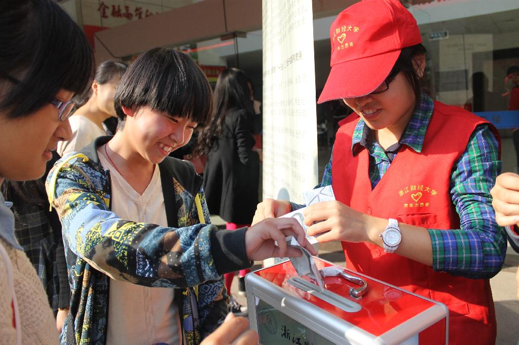 不同年级、不同专业的同学纷纷前来捐款,献出一份爱与关怀。