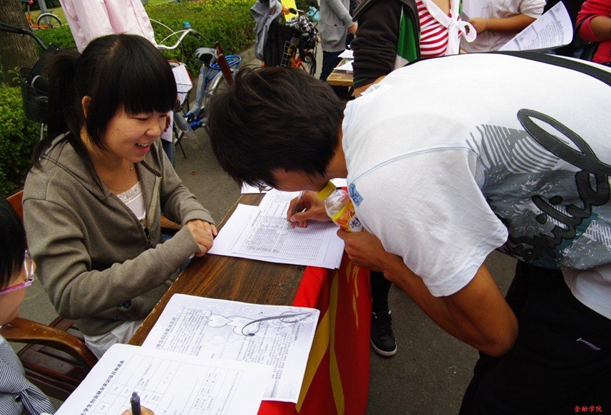保险学会承办的2009年杭州大学生创业就业实训活动现场招生会在校西门口顺利展开。