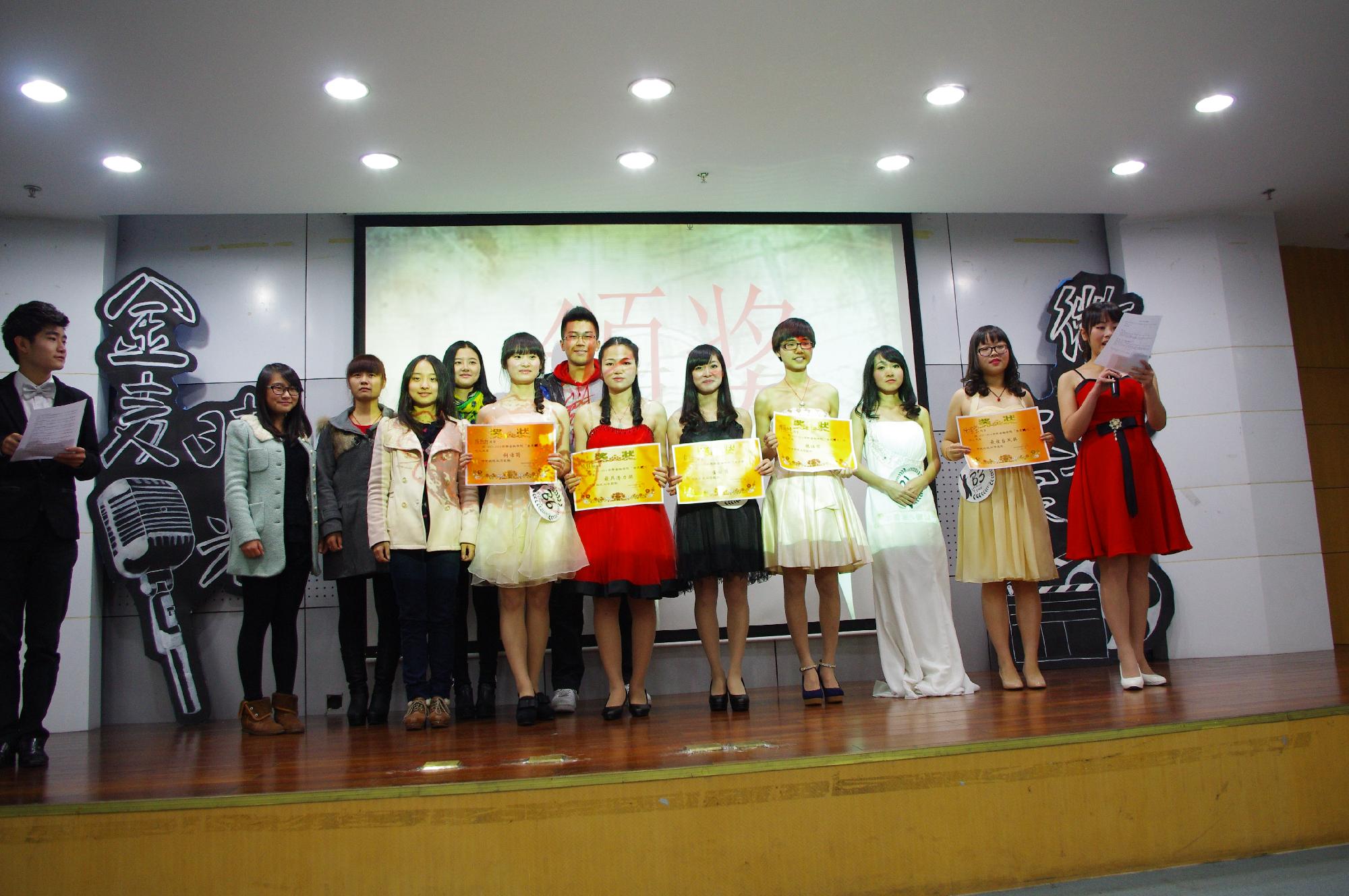 在一片欢乐的气氛中,本次比赛的结果揭晓:获得微电影大赛一等奖的是《牛奶smile》。获得二等奖的是《逝》《女厕》。而《99度青春》 《浮光那些年》和《谁是贼》三部微电影获得了三等奖。而“金麦时光”主持人大赛的金银铜话筒分别由12 信管班的俞恬、12金融2班的廖茜娜和12金融4班的陈扬扬斩获。而12金融4班的陈燚丽和13金融1班的杨莹莹分别获得最佳潜力奖和最佳台风奖。