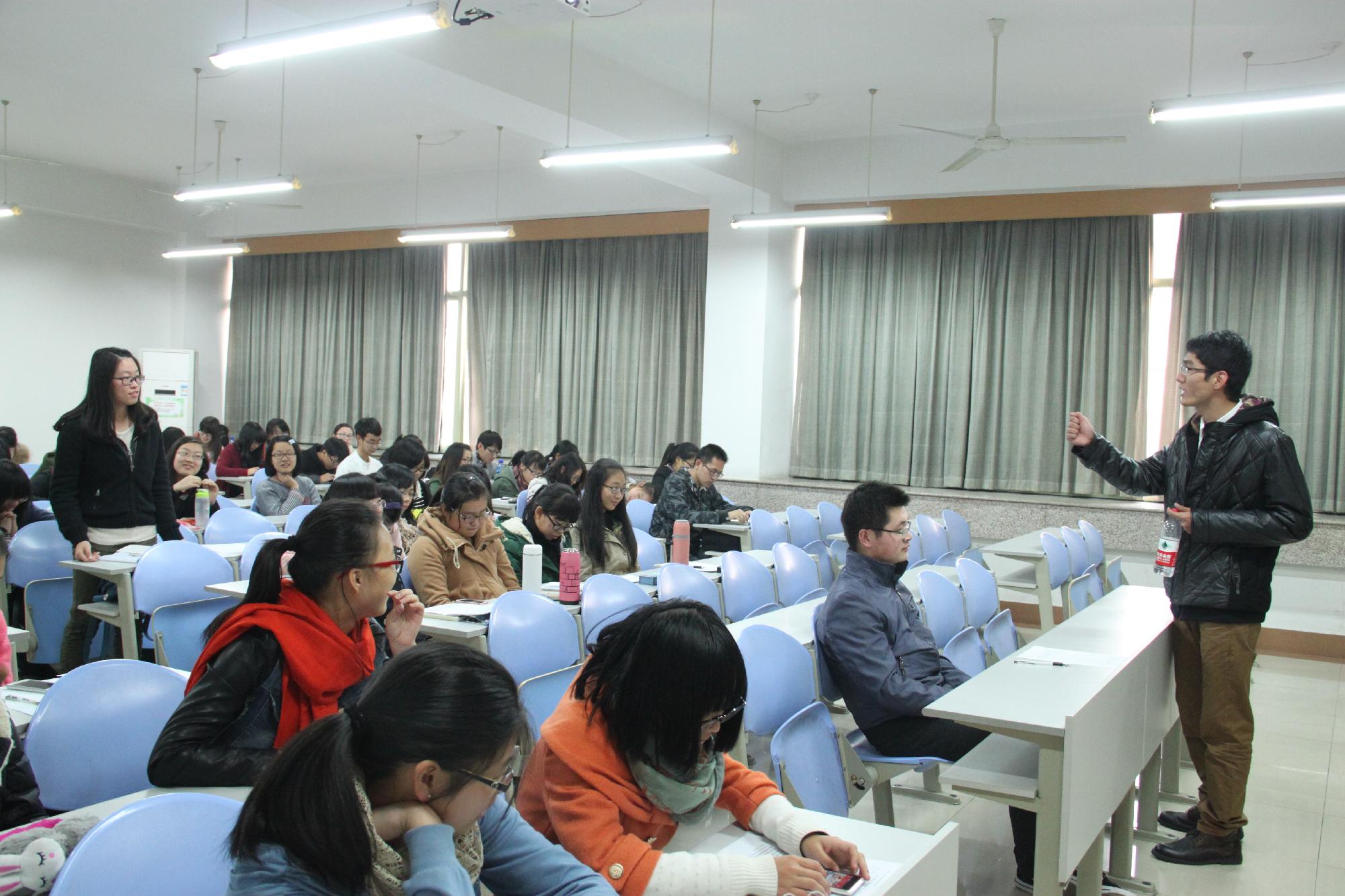 紧接着,江欢强调了要多参与社会实践,多找兼职,社会很残酷,每个人只有充分深入社会、了解社会才能够适应社会的需求。作为兼职而言,赚钱是次要的,重要的是从中获得经验。而谈到参加学生会各种活动,江欢认为最重要的是责任感,既然选择了这项工作,就必须尽自己最大的努力去完成,不能半途而废。他认为在大学的学习中最重要的是一个“定”字,现在的大学充满着浮躁的气息,大多数人很难定下心来学习,所以心“定”就显得极为重要。