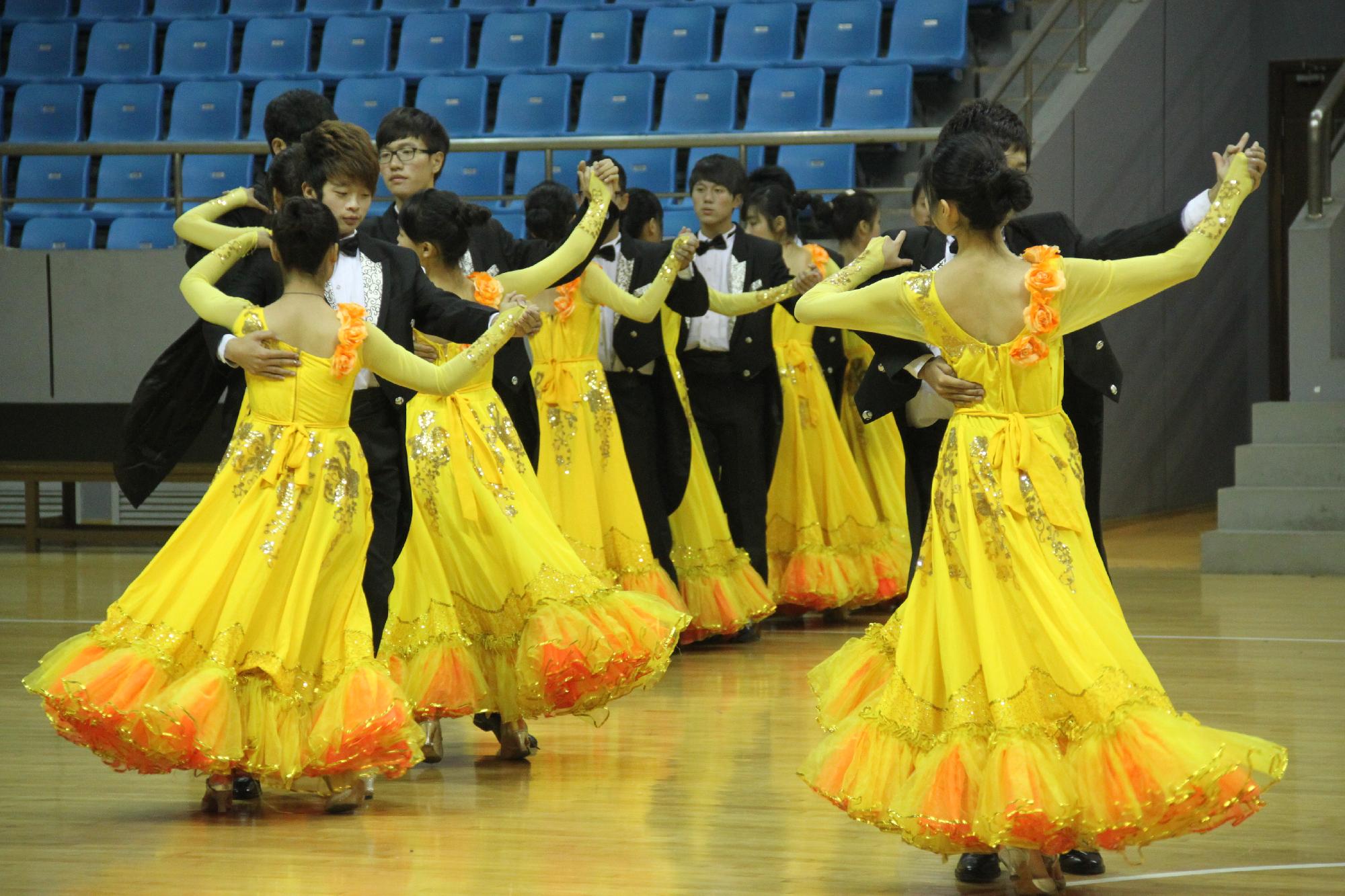 近日淅淅沥沥的雨和骤降的温度丝毫没有减退各学院同学的参赛热情,他们早早地来到了体育馆化妆、换服装、练习,为比赛做好充分的准备。在简单的彩排之后,比赛准时开始。首先进行的是伦巴单人和双人的比赛,选手们华美的服装、优美的舞步博得了全场评委和观众的赞美。随着比赛的进行,选手们将训练的成果一一展示出来,引来了观众们的阵阵欢呼。在集体舞华尔兹环节,酷爱成人网