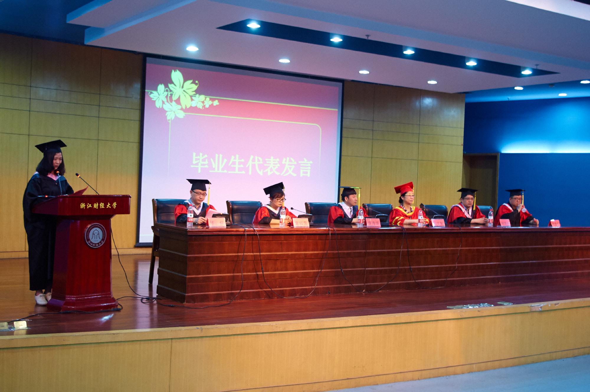 10级金融1班的毛琼同学代表毕业生发言。她用寥寥几句的简单话语,表达了对大学时光的留念,对母校、老师的感恩,道出了全体毕业生的心声。11级金融4班汤洁同学也代表在校生上台发言,向毕业的学长学姐表达了真挚的感谢,并衷心祝愿他们在毕业后能够工作顺利,拥有更美好的生活。