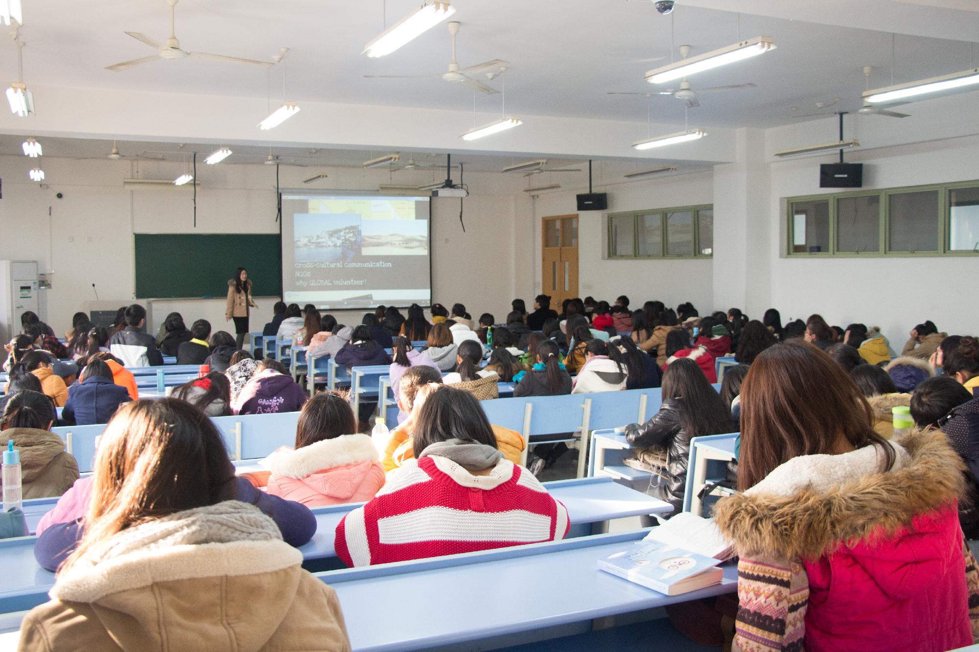 课堂开始时,李畅主席和同学们介绍了她自己的经历以及她想要加入AIESEC的初衷。她说,她和在座的同学们一样经历了严酷的高考,进入大学,并在大一是感到彷徨、迷茫,找不到自己扬帆的方向,因此,她加入了AIESEC。在加入AIESEC之后,她明白了少数人一样可以做一件惊天动地的大事。紧接着,李畅主席告诉同学们,在加入了AIESEC之后,她做了出国参与志愿服务的决定,并且一直朝着这个方向努力。她对国外志愿服务的深深渴望及向往,让她完成了参与国外志愿服务工作的梦想。而后,李畅主席向同学们讲述了她在突尼斯有趣的海外志愿服务经历,带领同学领略了与众不同的大学生活,使大家对海外志愿服务产生了浓厚的兴趣。她说,她加入AIESEC,是因为她被其深深触动,AIESEC让她知道了志愿服务并不是牺牲自己来成就别人,而是一种可持续化公益,也正是这个,使她对AIESEC始终充满澎湃的激情。临近结束,李畅主席也重点地和同学们交流了海外实习的经验。她讲述了即使在埃博拉盛行的时期,大家仍然积极奔赴非洲,投入到志愿者服务当中。她还和同学们分享了她在非洲孤儿院进行志愿者服务活动的快乐与烦恼,进一步加深了同学们对AIESEC的兴趣。