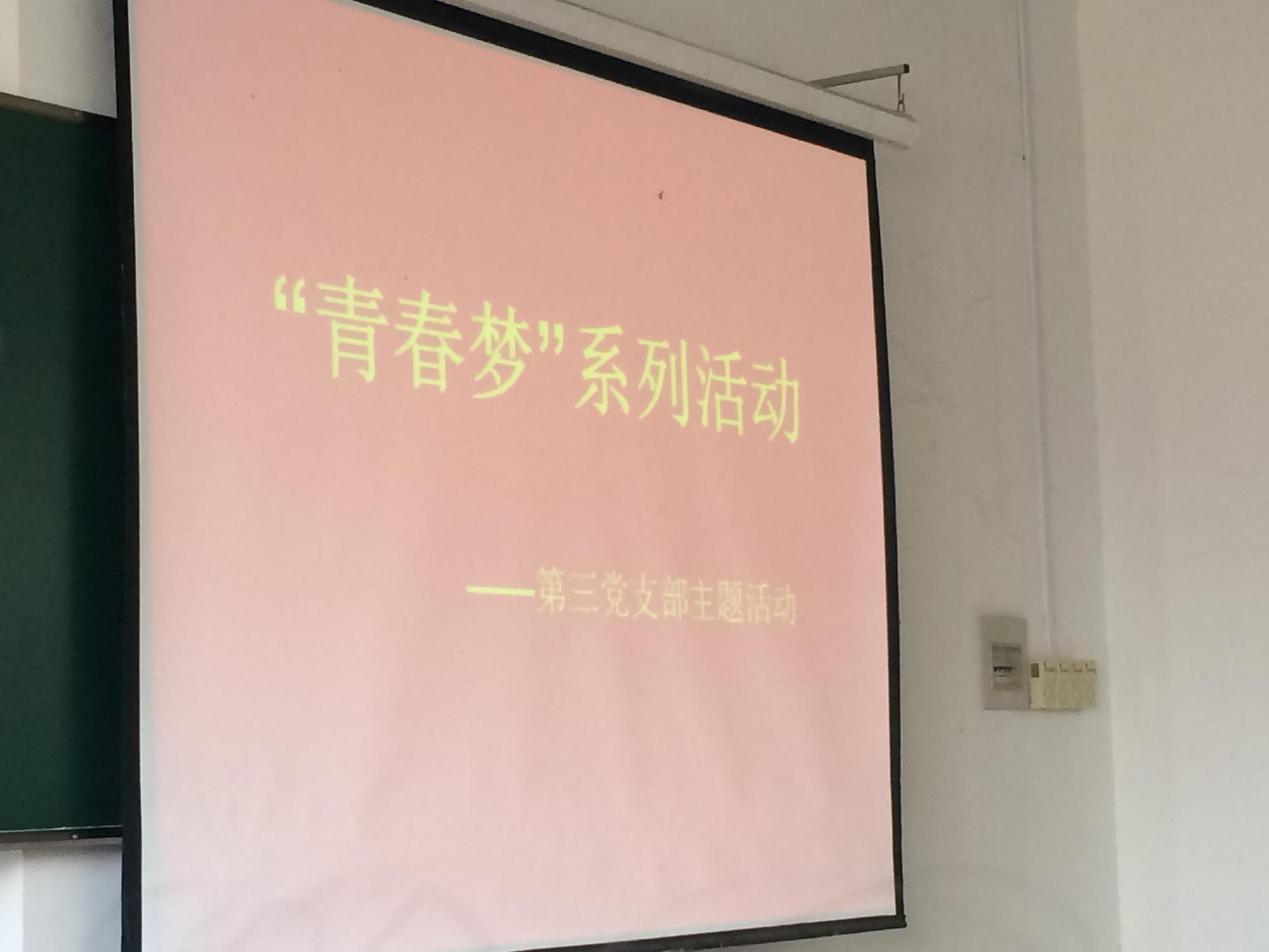 第三党支部及其成员。随后,全体成员以“青春梦”系列主题展开具体活动。本次活动旨在引导本支部成员关注习近平主席的讲话,通过自身的实践,不断加深对“讲话”的认识,传达讲话的精神,学习主要内容,心系祖国,关注社会动态。同时以大学生的角度理解依法治国的重要意义。同时提高支部成员的政治觉悟,提升对时事问题的认知能力和理解能力,更好地起到学生先锋模范作用。活动通过观看习近平总书记重要讲话视频来更进一步深刻理解习近平总书记讲话内容。