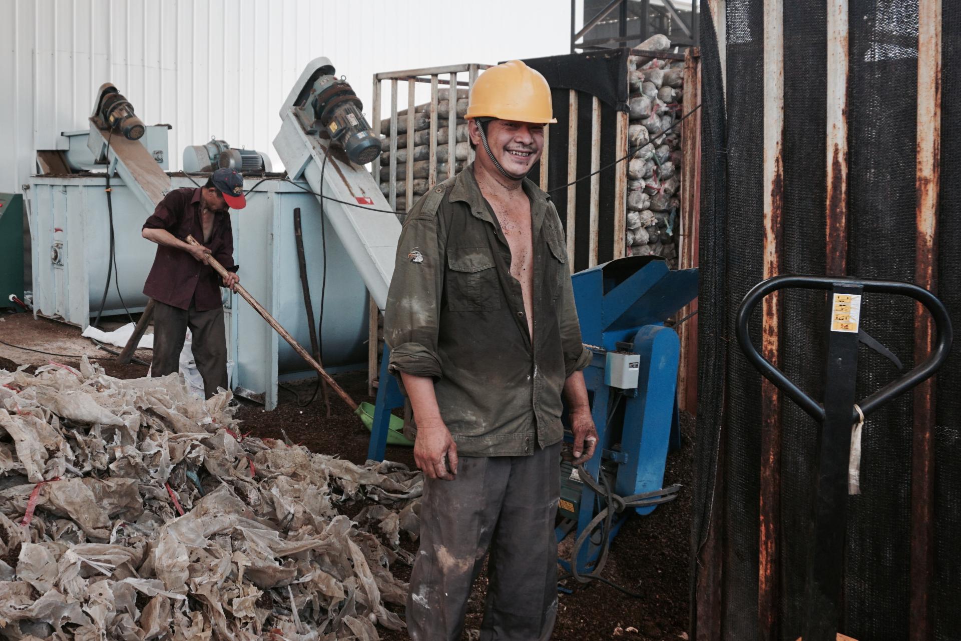 香菇种植基地的工人洋溢着幸福的笑容