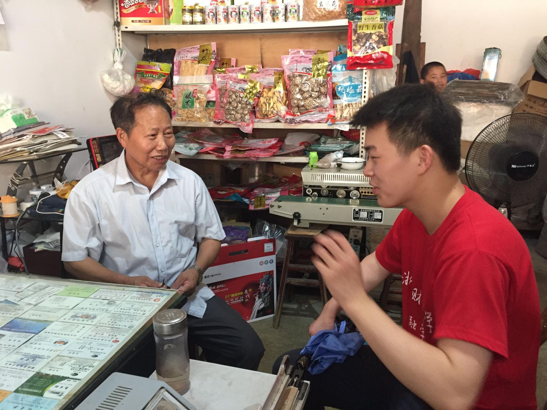 实践团采访有着20年销售经验的香菇店老板