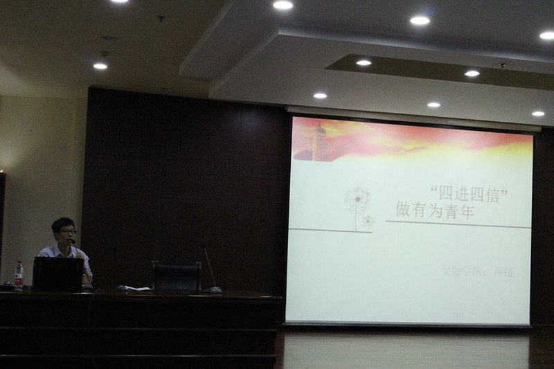 蒋老师向同学们介绍了“四进四信”,新的概念让同学们耳目一新,加深了同学们的精神信仰。接着对同学们提出了志在四方,平实做人的期望,希望同学们做有为青年,并鼓励同学们通过组织锻炼自己为人处事的能力,积极参加志愿者活动,合理利用资源。