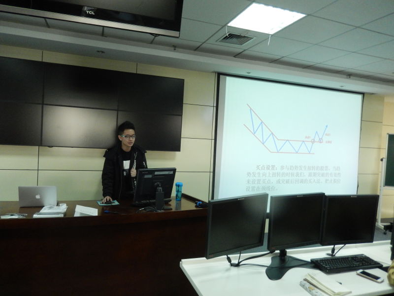 121日下午1:30,金融学会于E楼310教室开办本学期第二次股市沙龙,本次沙龙的主题是K线形态和指标,主讲嘉宾是许昊和卢杜铮,学术委员会的大多数成员亦参与其中,许多对股市有学习兴趣的干事和学会会员踊跃参加、积极听讲。