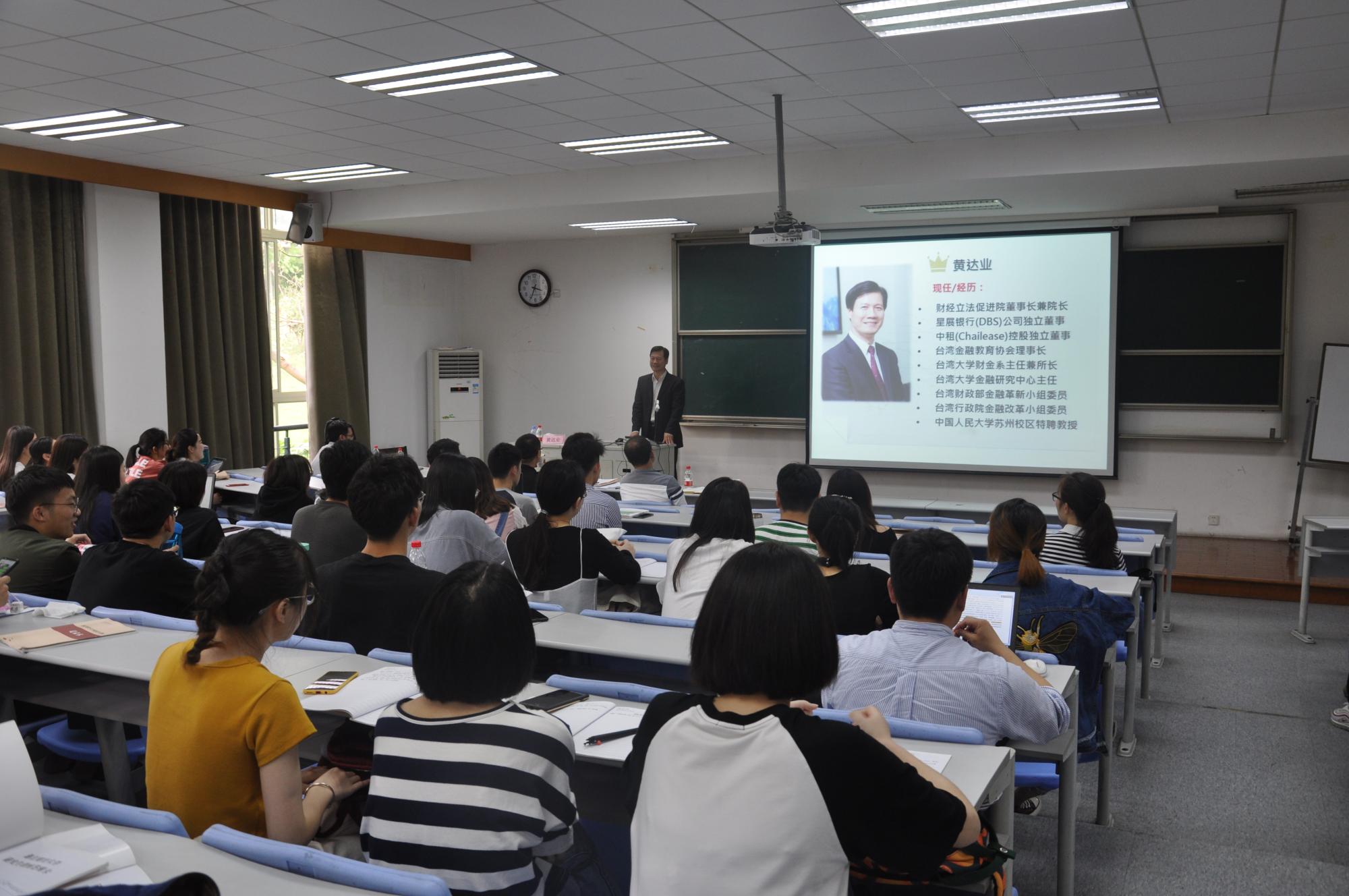 102教室,台湾大学黄达业教授应邀作了题为“金融监管、金融创新与大国金融人才的打造”的学术报告,酷爱成人网