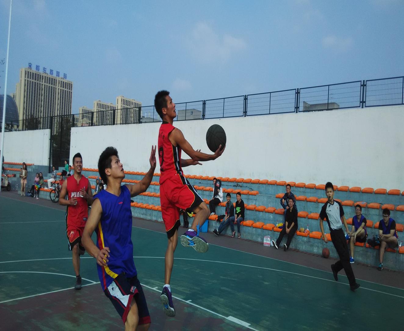 篮球队在上场战胜工商、城乡、信息三院联队后,已经提前锁定淘汰赛资格,这场面对思政部、管制学院和人文学院联队,酷爱成人网