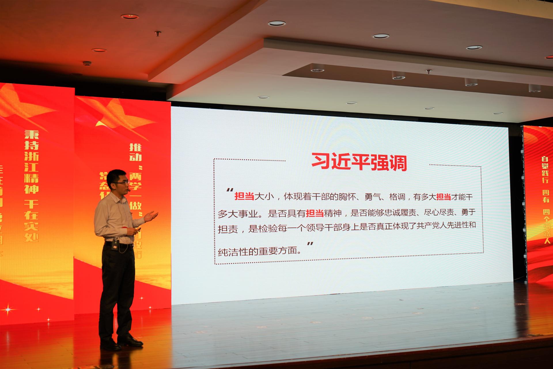 张超老师则从一名高校教师的身份出发,讲述了《做有担当的引路人》所需具备的品质与精神,提出作为学生的引路人不仅要在行动上领头前行,更要从思维、精神起带头作用,有担当,敢担当。
