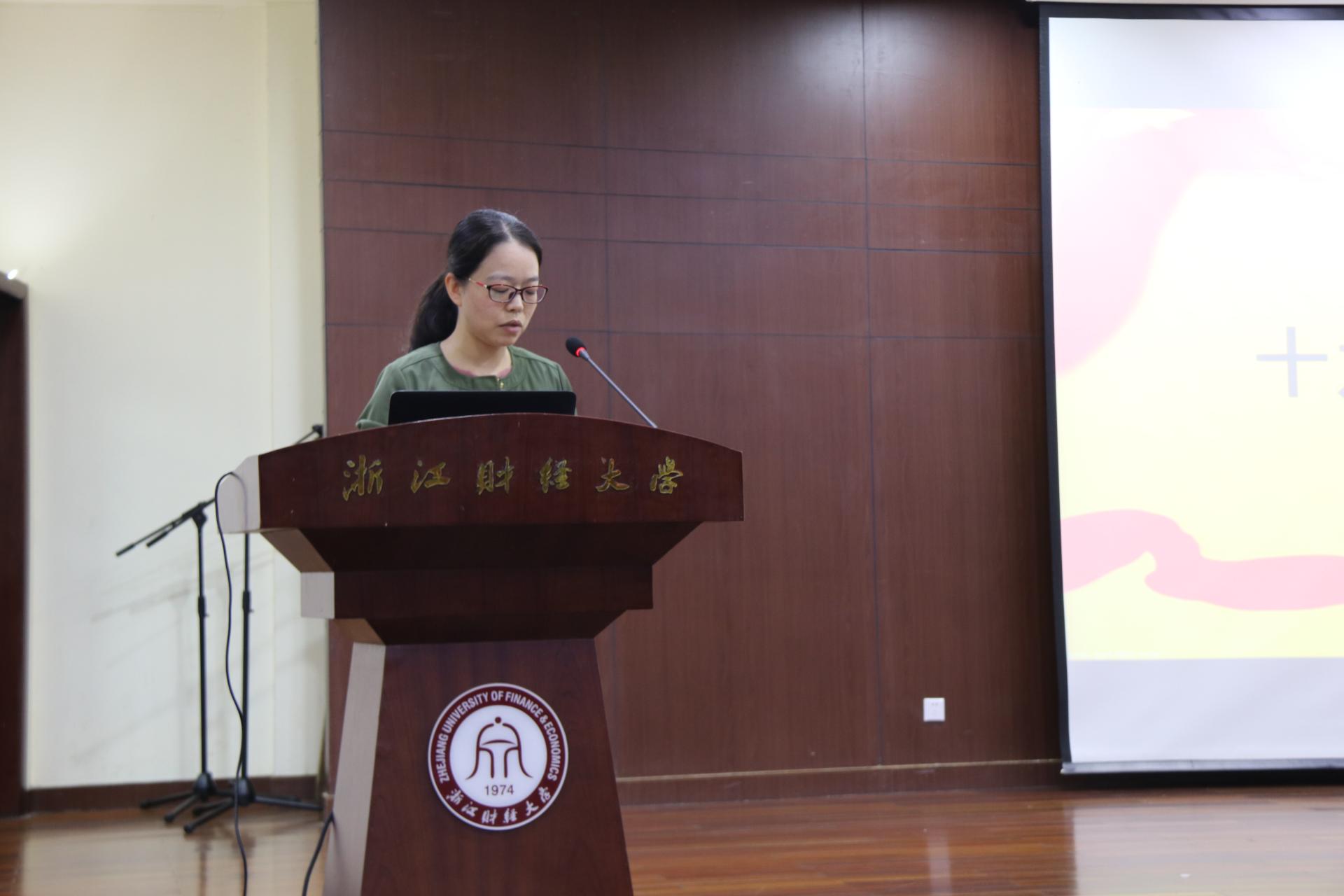 邓小平理论读书会会长。她以“不忘初心跟党走”为主题与大家分享了参加十九大精神专题学习会后的感受,同时也分享了自己的入党经历,号召团员青年要端正入党动机,积极参加党章学习小组组织的各项活动,扎实学好政治理论知识,争取思想上先入党,行动上以党员的标准要求自己。
