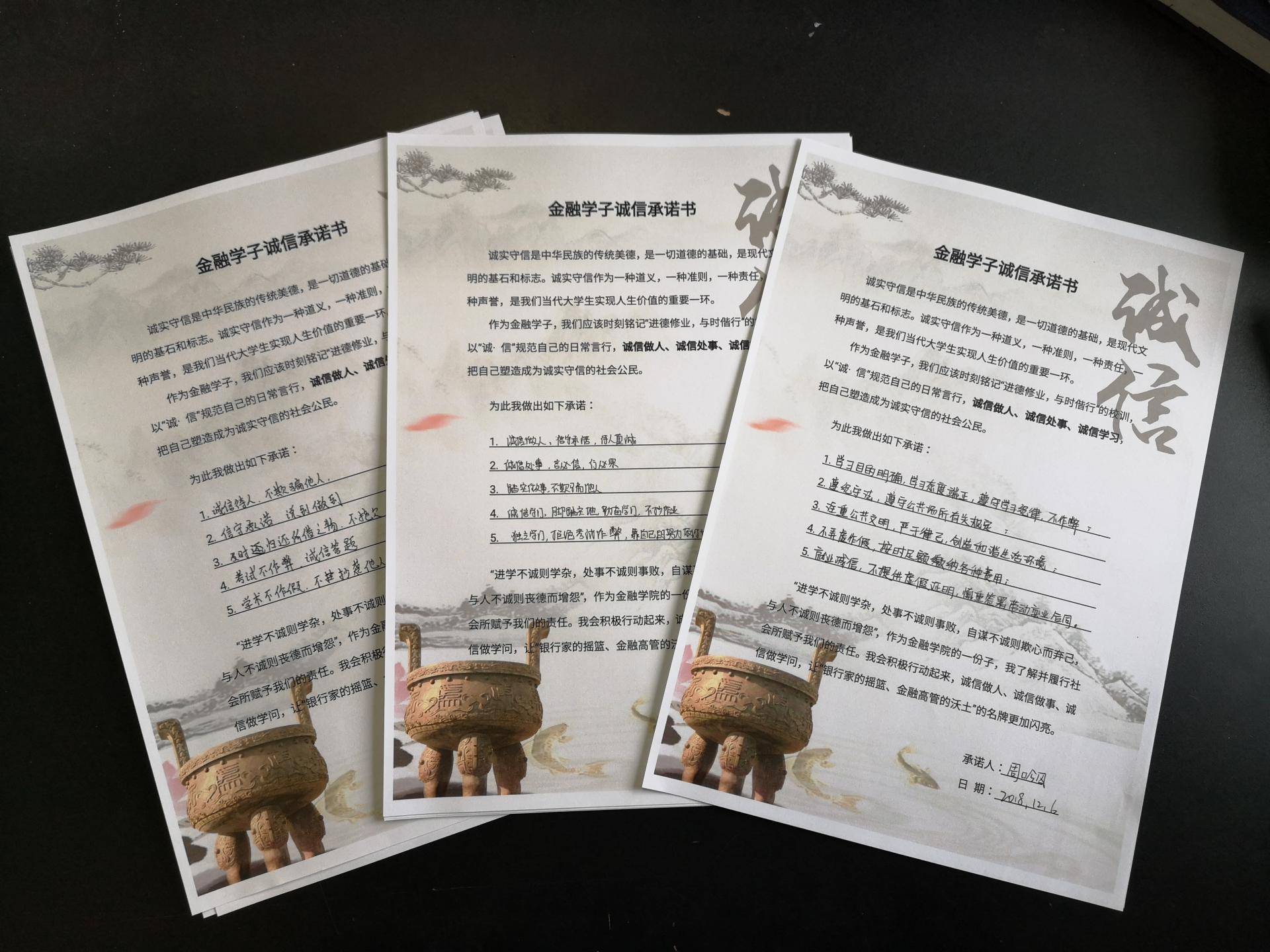 近日,学院党委开展了签订《金融学子诚信承诺书》活动,活动由各支部书记负责。本科和研究生共184名学生党员,围绕“诚信做人、诚信处事、诚信学习”做出了自己庄严的承诺。