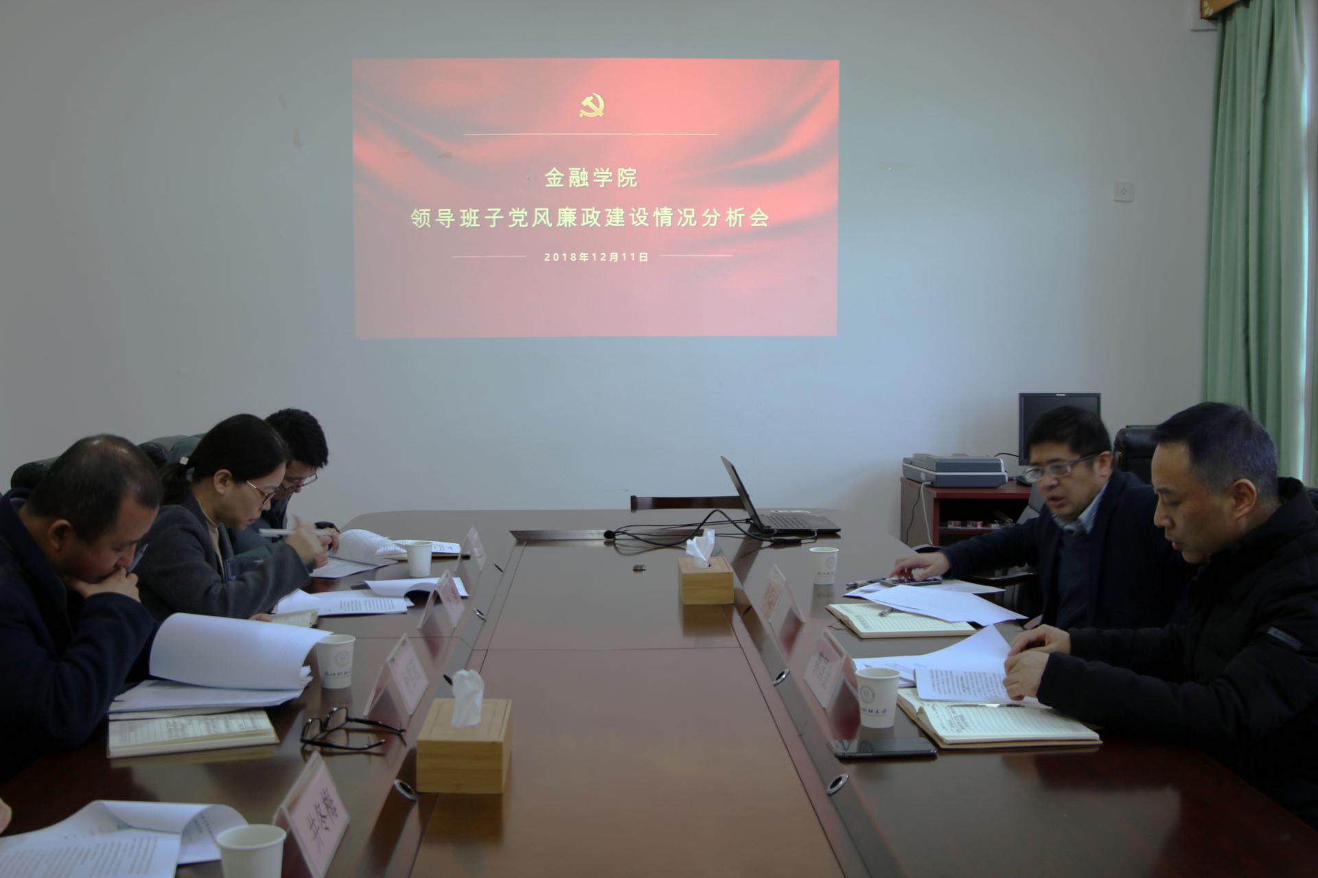 2018年度领导班子党风廉政建设情况分析会在学院楼418会议室举行。学院党政领导班子全体成员,学院党委委员,学院纪委委员参加了本次会议。会议由院党委书记蔡国金主持。