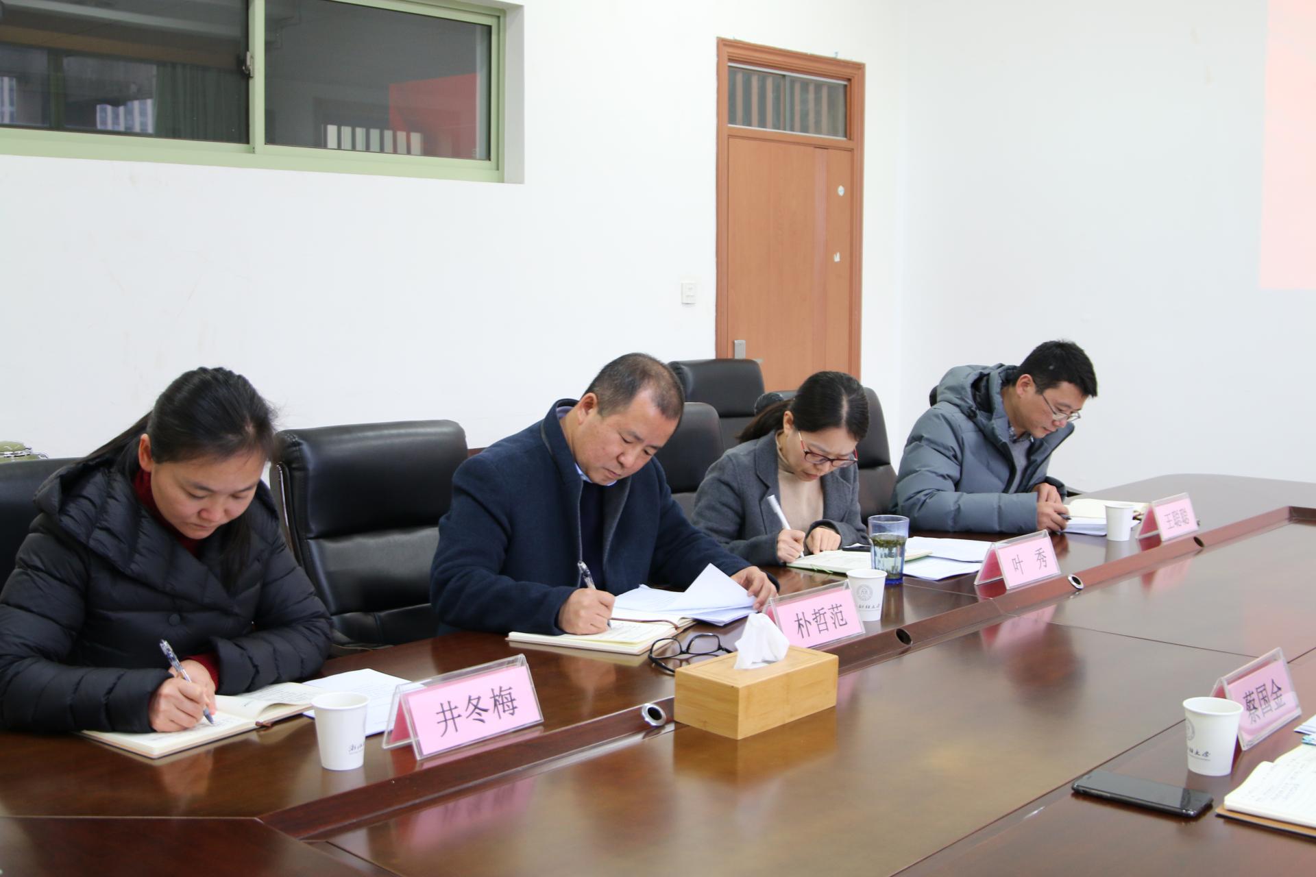 蔡书记从2018年学院党风廉政建设“两个责任”的落实情况,学院领导班子成员履行“一岗双责”情况,廉政风险排查与防控体系建设情况,排查、整治形式主义和官僚主义情况等四个方面进行了汇报。随后,领导班子成员结合各自分管工作,分别就“一岗双责”履行情况进行总结反思,梳理了分管领域廉政风险点及表现形式并提出具体防控措施,分析了在各自岗位排查、整治形式主义和官僚主义情况。与会成员就工作实际遇到的问题,深入讨论了研究生招生培养、中外合作办学、专业分流等方面存在的风险点,探讨解决措施。
