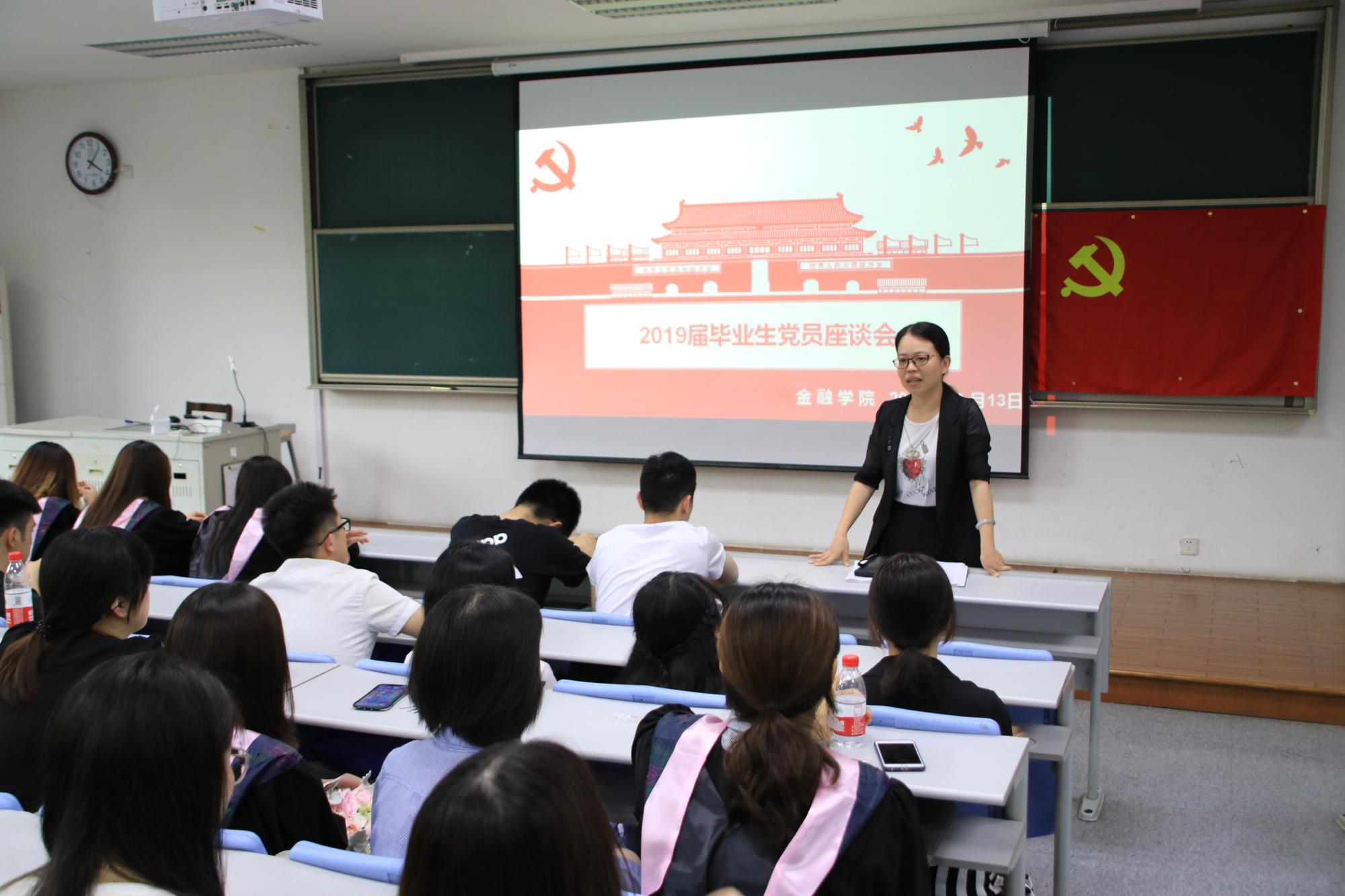 6月14日下午,学院党委副书记兼纪委书记叶秀在3号楼102教室对即将走向工作岗位的毕业生党员进行集体座谈,从政治纪律、组织纪律、廉洁纪律、工作纪律、生活纪律五个方面对毕业生党员提出希望和要求,并结合自身体会、金融行业实际以及鲜活案例,为毕业生党员敲响警钟。叶书记强调,每一位毕业生党员都要做到政治素养过硬、组织纪律严明、工作认真负责、生活作风端正、注重党性修养,将廉政意识牢记在心;牢记“进德修业,与时偕行”的校训,以党章党规明确标准,以习近平总书记系列重要讲话精神武装头脑,不忘初心,牢记使命,砥砺前行。