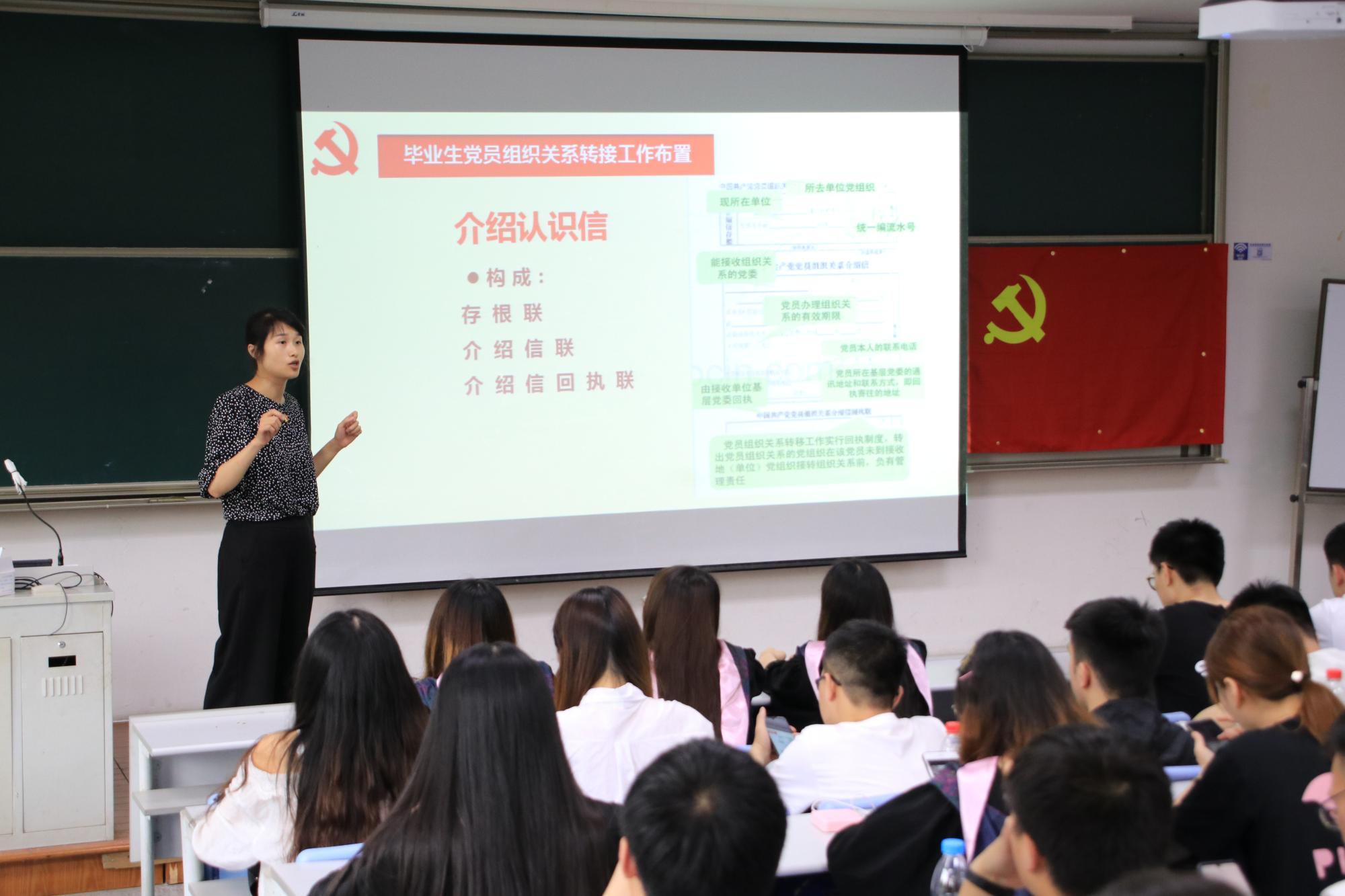 学院党委开展毕业生党员离校专题教育,学院组织员吴轶韵带领毕业生党员再次学习党章以及组织关系、档案转接等相关规定,强调要有效发挥好党员在毕业生离校期间的模范带头作用,并针对就业、读研、出国等不同情况的毕业生党员进行答疑疑惑。