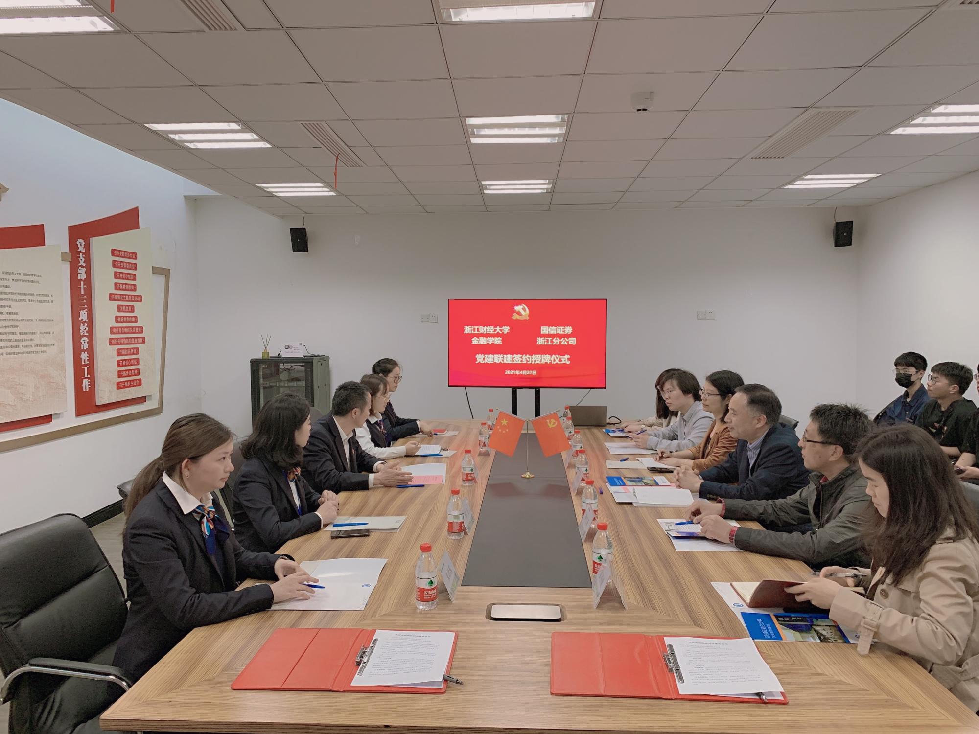 党委与国信证券浙江分公司党委在国信证券白沙泉投资者教育基地举行党建共建签约仪式。国信证券浙江分公司党委副书记王继翔,党委委员、第一党支部书记、党群办公室主任许清艳,第二党支部书记、直属业务二部总经理助理郑飞,酷爱成人网
