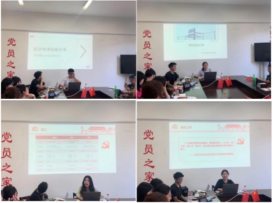 活动伊始,优秀毕业生党员给全体支部成员分享交流经验。首先,已录取为国外名校研究生的陈泽民同志就考公、就业、国内读研、国外留学四条发展途径的利弊与规划发表个人见解,并着重于留学申请方向分享了自己的经历,提出了实用建议。其次,已被中国科技大学录取的沈开颜同志结合自身经历就国内考研方向讲述考研过程中心态与择校的重要性。随后,陈莉雯、杭铃嫣同志共同就考公方向分享备考、选岗技巧。支部全体同志在交流与探讨中纷纷表示获益良多,尤其是为与会的学弟学妹提供了很好的榜样力量。