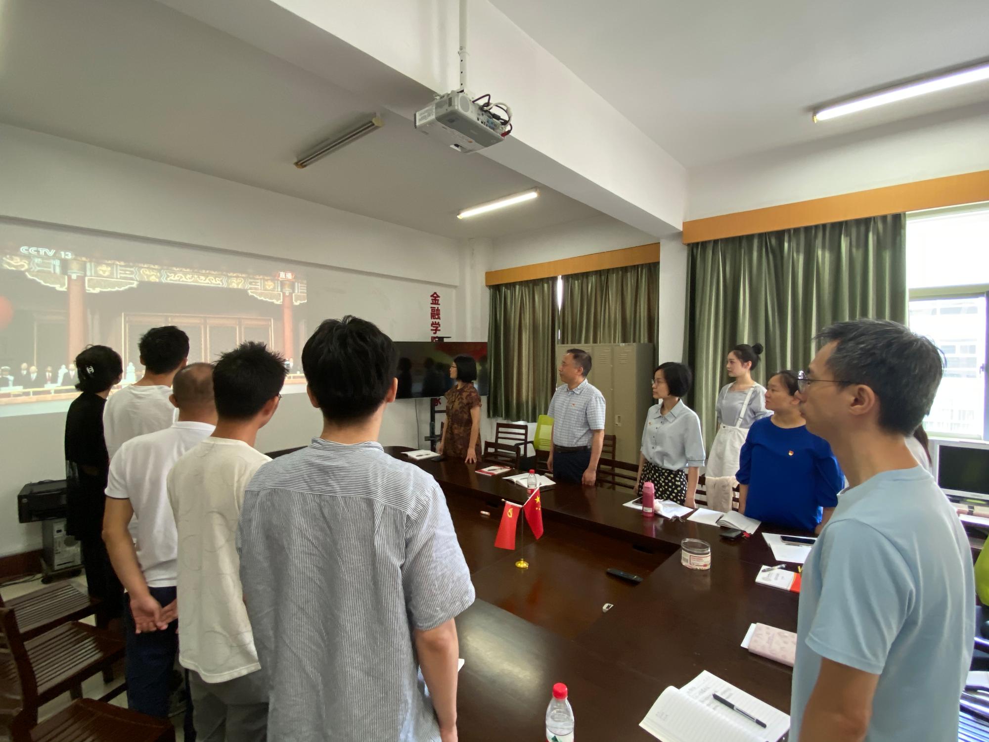 7月1日上午,庆祝中国共产党成立100周年大会在北京天安门广场隆重举行。中共中央总书记、国家主席、中央军委主席习近平发表重要讲话。金融学院党委组织全体党员干部和师生通过电视、网络直播收听收看大会盛况,并畅谈学习体会和感受。