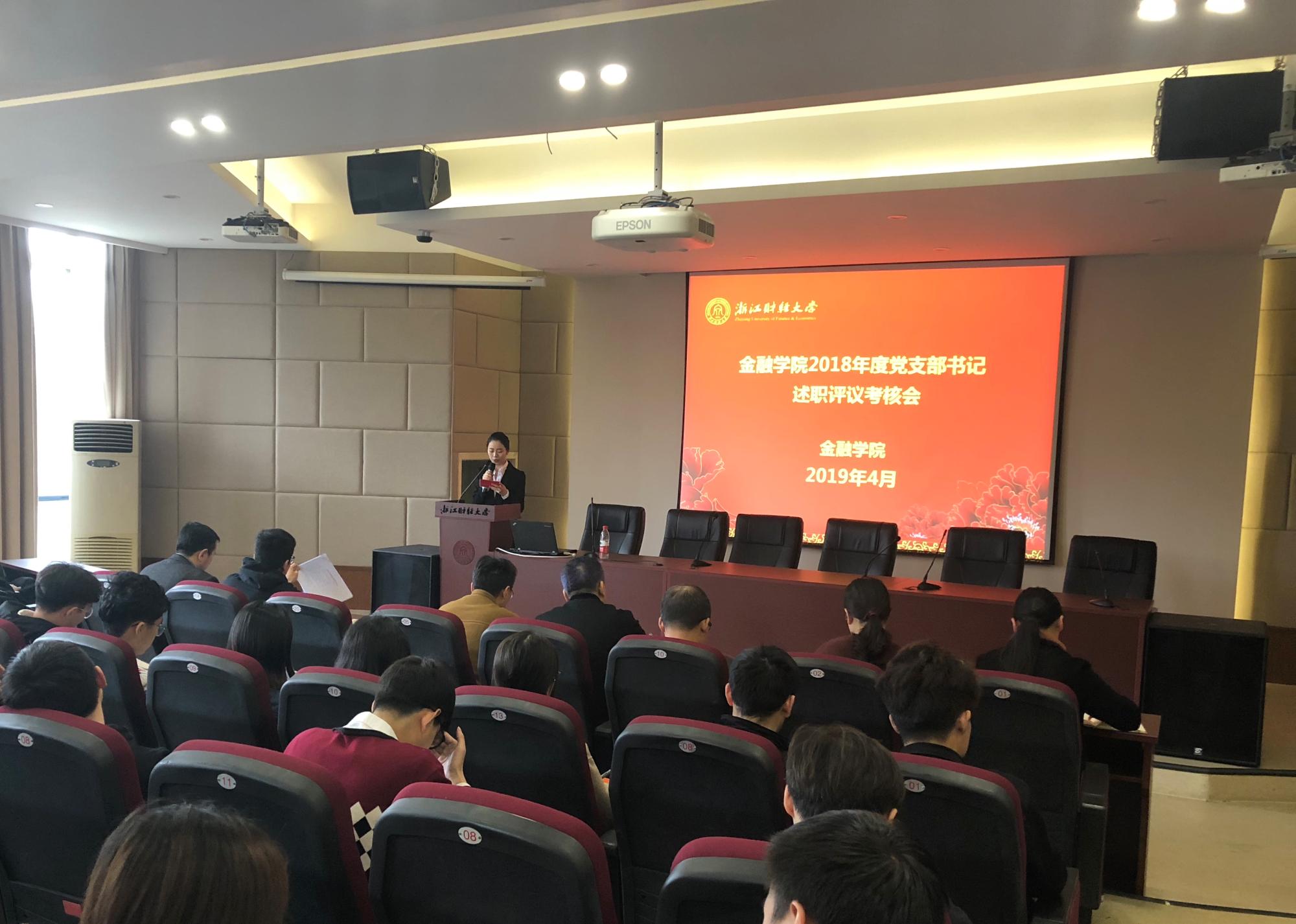 会上,学院教工党支部、本科生党支部、研究生党支部共10个支部先后对2018年各自支部开展的工作情况进行现场述职汇报。各支部书记认真总结了2018年宣传贯彻落实习近平新时代中国特色社会主义思想和党的十九大精神、持续推进“两学一做”学习教育常态化制度化、推进党支部规范化建设、党员队伍建设等方面的内容,并实事求是地指出支部目前存在的不足,同时提出了新一年具体的整改思路和措施。学院领导及各支部书记组成评议小组进行现场考评打分。