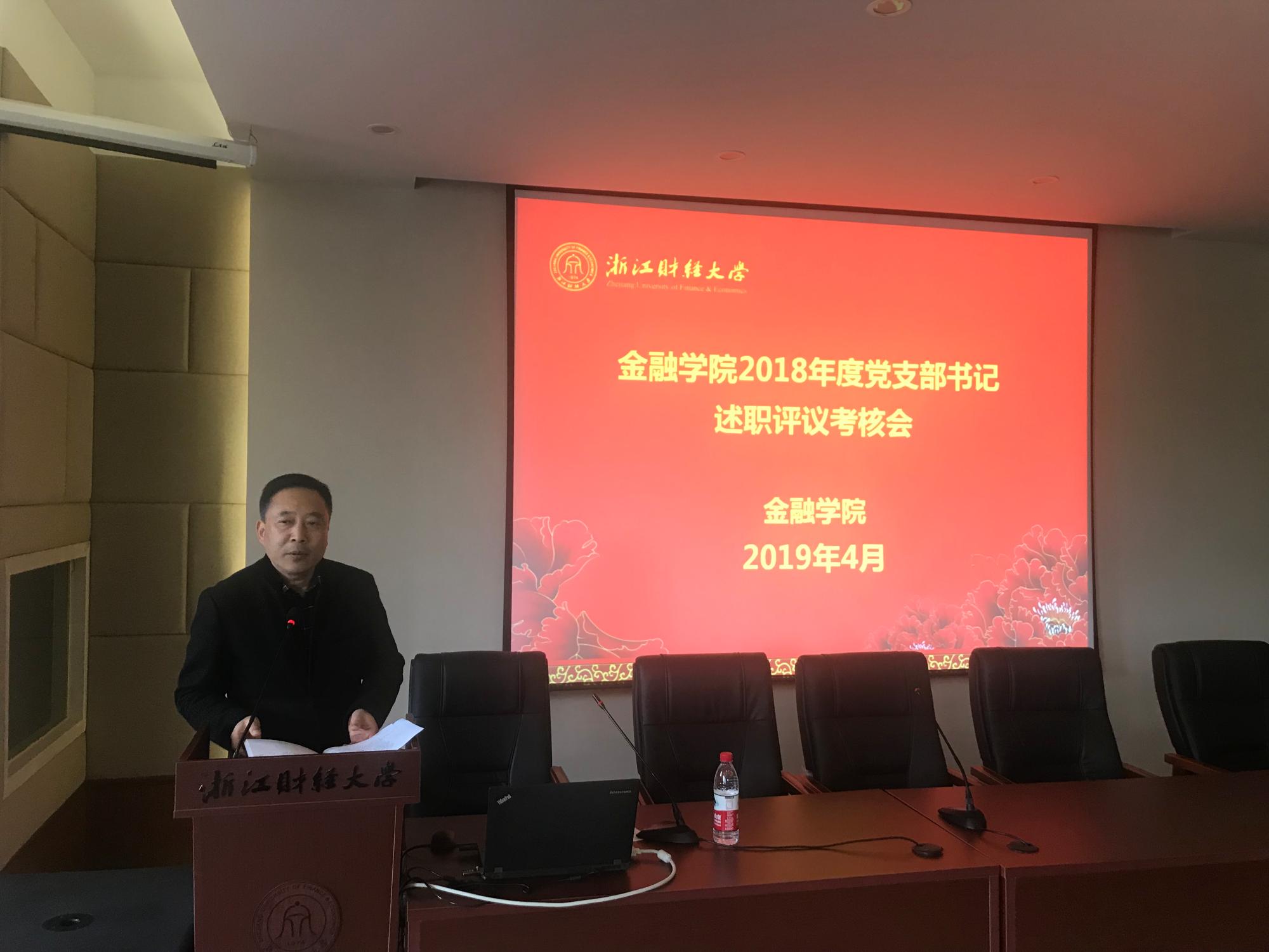 2018年度党支部书记述职评议考核工作会议。学院党委书记蔡国金、党委副书记叶秀、副院长朴哲范、研究生支部指导老师及各党支部书记、师生党员代表共百余人参加了会议。