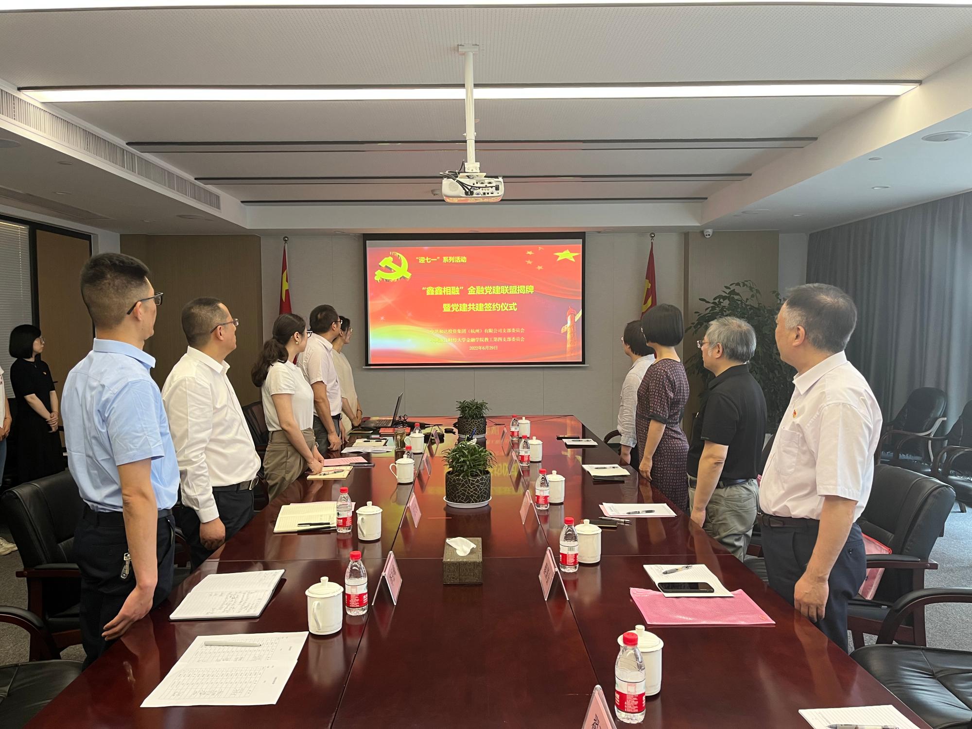 的基本情况。他指出,党建共建是党建工作融入基层、融入业务、融入人心的有效举措。他希望共建双方以此次活动为契机,进一步加强交流,在党建引领、课题研讨、实习培训、人才培养、志愿服务等方面开展深度合作,共同搭建以金融投资专业为核心的“鑫鑫相融”党建联盟平台,进一步推动党建工作和育人工作共同发展,不断提升党员队伍的综合素质,增强党组织发展活力和党建工作科学化水平,不断助力双方事业发展再上新的台阶,为浙江推进“两个先行”作出应有的贡献,以优异成绩迎接党的二十大胜利召开!