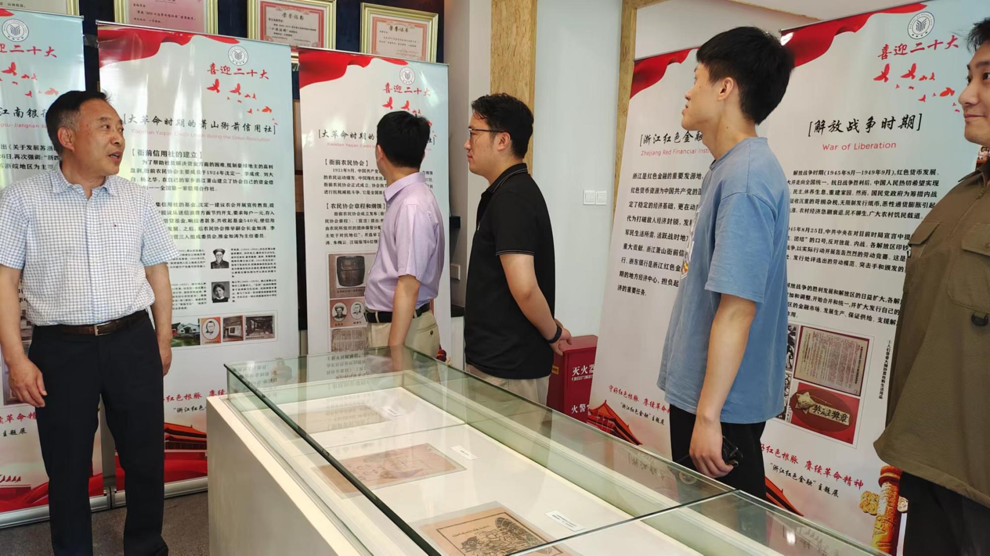 党委组织学院师生党员参观了此次展览。大家一起了解浙江红色金融的历史发展轨迹,让红色金融货币从历史的深处走出来,使这些带着战争硝烟的红色文物来讲述过往的历史故事。“我们这次主要展出的是浙江的红色货币和金融事业发展过程,是我们学院去年举办的‘跟着货币学党史’主题展的延伸,也是大力实施红色根脉强基工程,推动党史学习教育常态化长效化的重要举措。”蔡国金书记说到。