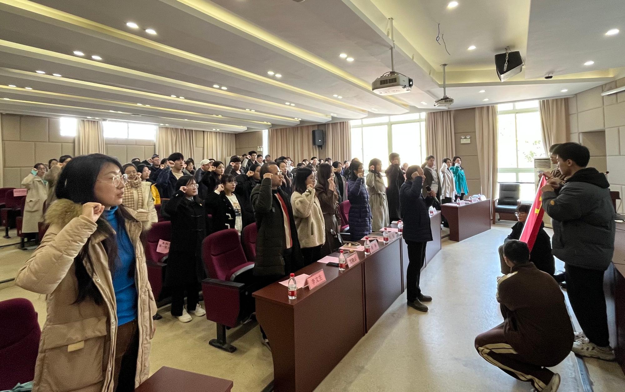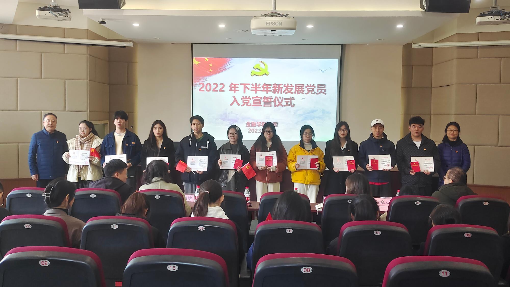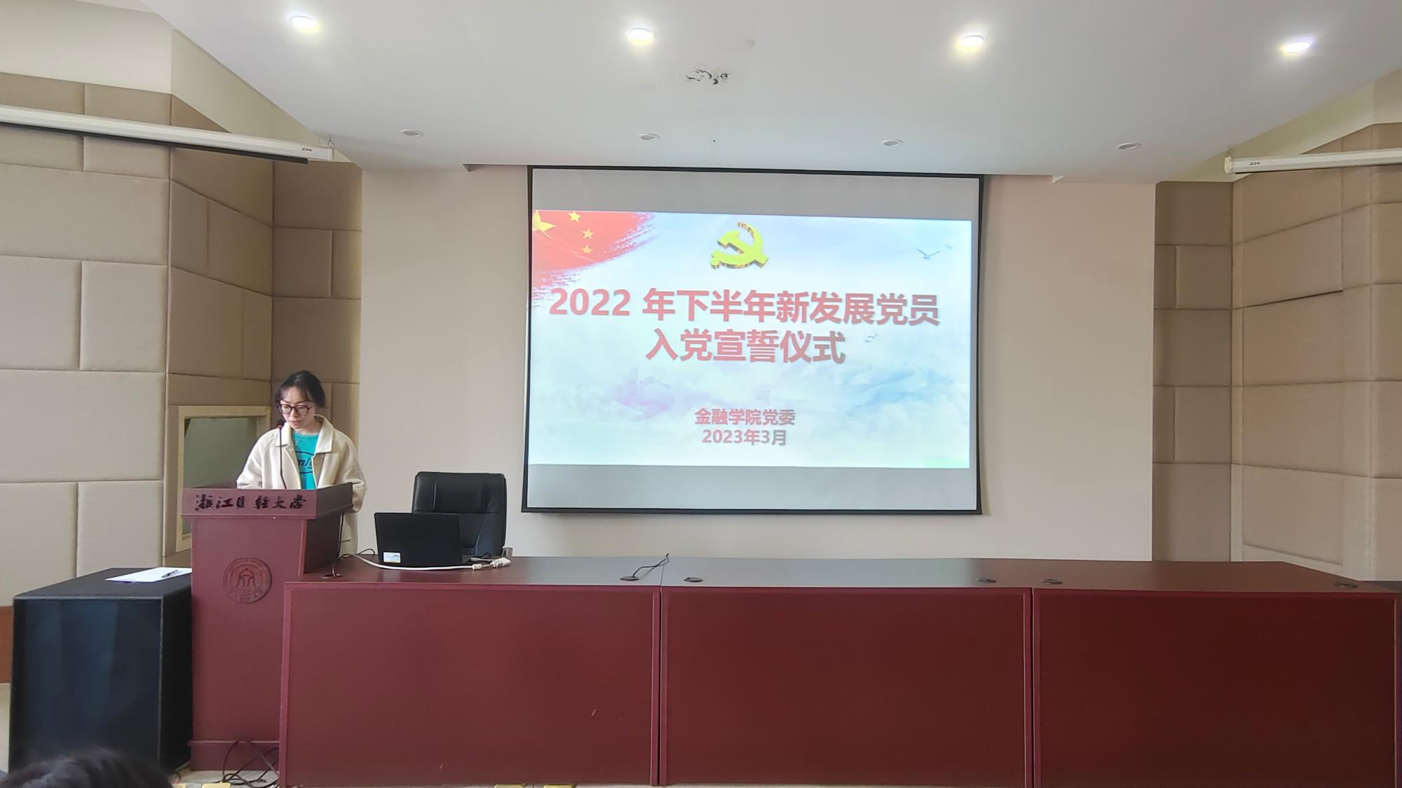 党委在学院楼202报告厅举行2022年下半年新发展党员入党宣誓仪式。学院党委书记蔡国金、党委副书记谢敏、各学生党支部书记、党建指导老师、各支部支委、老党员代表及全体新发展党员出席了本次仪式。仪式由专职组织员翟丽媛主持。