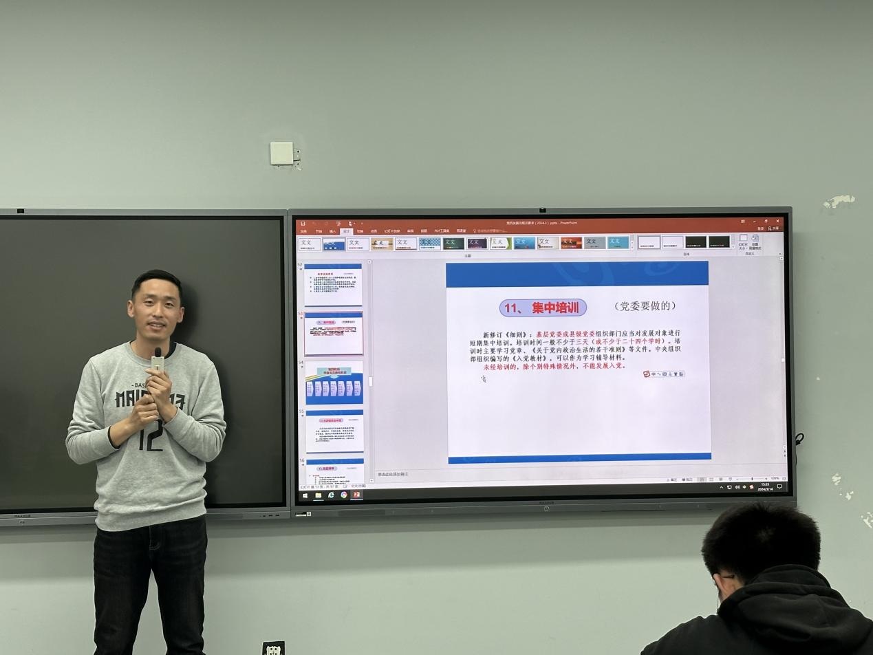 李钊军老师以《入党流程及要求》为主题,他首先用“你心目中的优秀共产党员是什么样子?”等问题将同学们带入主题,让同学们认真思考了自己的入党动机。其次他对入党流程及要求展开了详细介绍,让同学们明白了入党需要坚定的理想信念、良好的道德品质、优秀的业务能力与严格的组织纪律。希望同学们积极提高自身素质,为党的事业发展提供坚实保障!