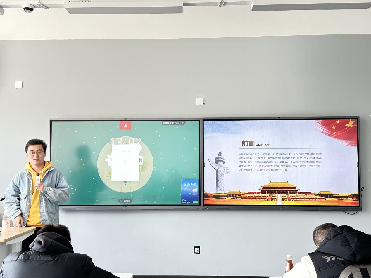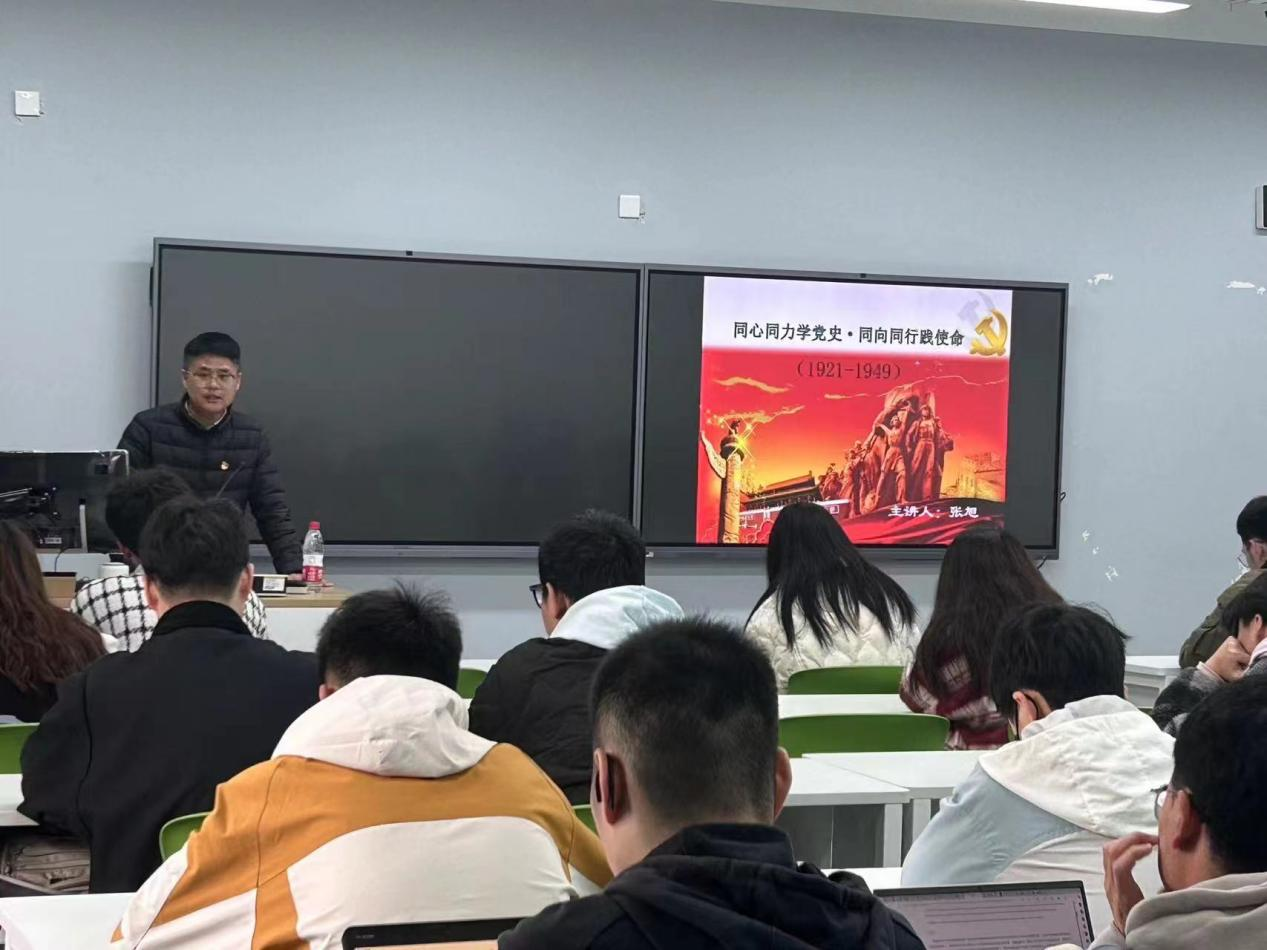 张旭老师以《同心同力学党史同向同行践使命》为主题,带领同学们共同学习党史以及中国共产党代表大会的发展历程,感悟中国共产党的光辉历程。在张旭老师的带领下,大家同心同力,深刻领会党的初心和使命,将以更加饱满的热情和更加坚定的信念,为实现中华民族伟大复兴的中国梦贡献力量,共谱新时代华章。希望同学们今后能够不断提升政治素养,坚定理想信念,以实际行动践行党的宗旨。