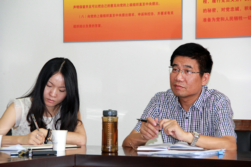 为贯彻落实党的群众路线教育实践活动,杨鹰彪教授以“四风”问题为切入点,让在座同学结合自己身边的现象和问题提出自己的意见和建议,同学们畅所欲言,在学风、校风建设、学生自身发展、就业指导、教师团队建设、学校资源共享等许多方面都提出了自己宝贵的意见。杨鹰彪教授及在座的各位辅导员认真记录了学生代表们提出的意见和建议,并就大家提出的问题与在座学生党员代表进行探讨和交流。