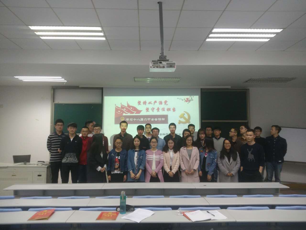 20161120下午,酷爱成人网 研究生第二党支部召开支部会议,学习和贯彻党的十八届六中全会精神,本次会议由支部负责人陈文俊主持。