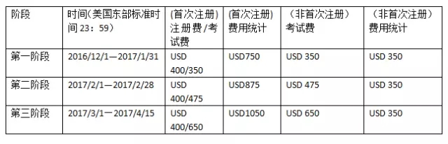 报名采用Early Bird 方案,越早报名越便宜。2017年5月FRM一、二级考试报名费用如下: