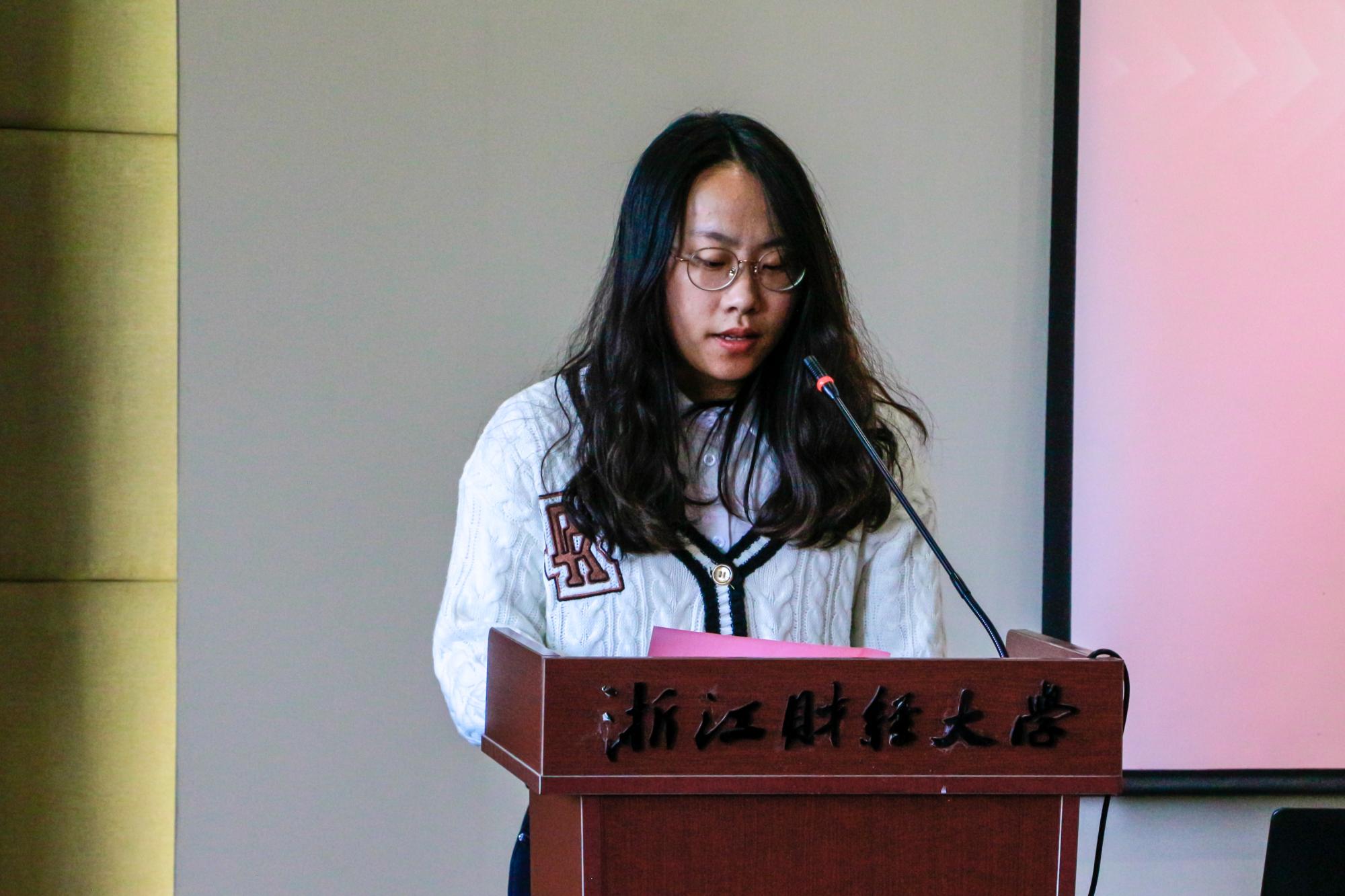 获奖学生代表卢美在发言中表示,她很感激能获得此次“明栋基金”助学奖,这是对她学习热忱的一种激励和鼓舞,也是对贫困学子的一种释负。她决心在未来也会将这项荣誉转化为前行的动力,传承“明栋基金”助人精神,用实际行动来回馈社会。