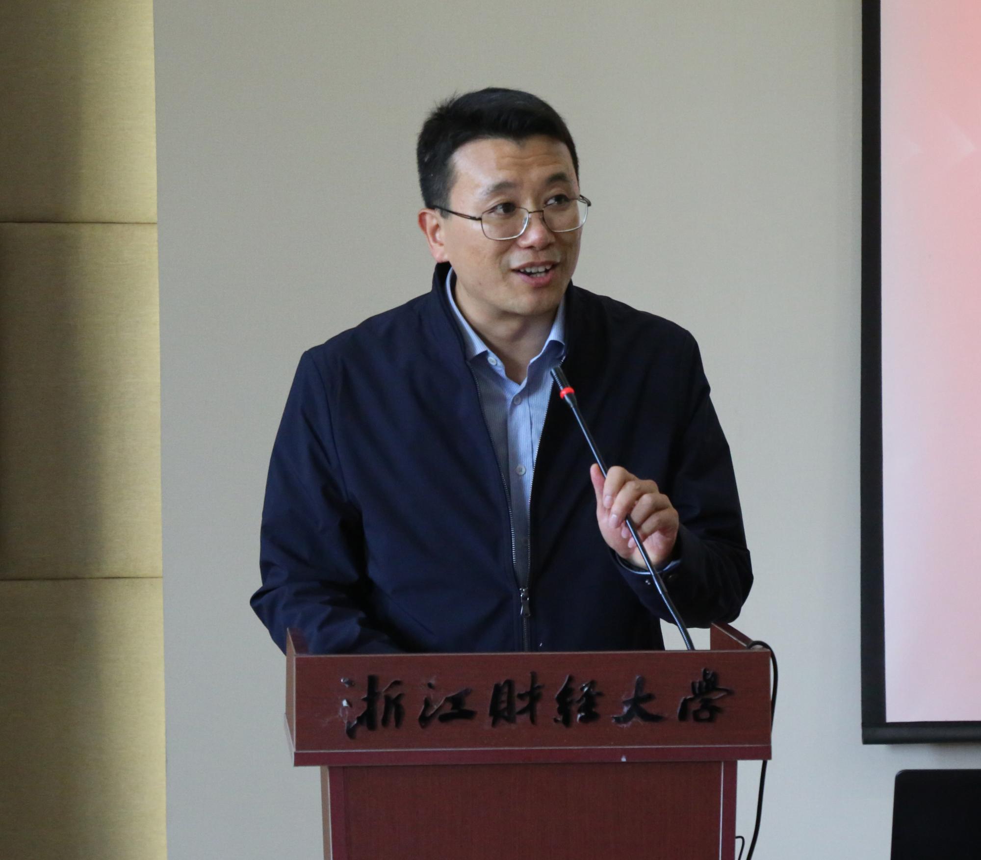 随后,“明栋基金”捐赠方代表、浙江盈阳资产管理股份有限公司创始人楼栋校友讲话。他向获奖同学表示祝贺,并分享了自身的求学经历和奋斗历程,深情表达了对母校、学院培养的感恩之情。他向大家阐释了设立明栋基金的初衷,是希望为学业优异但家庭困难的学子提供帮助,为创意独特、锐意进取的学子助力。他见证了基金顺利运行的这7年,为一批批学子们不断突破自我、励志成长的经历深感欣慰,也对保障基金顺利运行的学院和工作人员表示感谢。他嘱咐获奖学生们要继续秉持金融学子的使命感和责任感,自立自强、顽强拼搏,传承和发扬“明栋基金”精神。