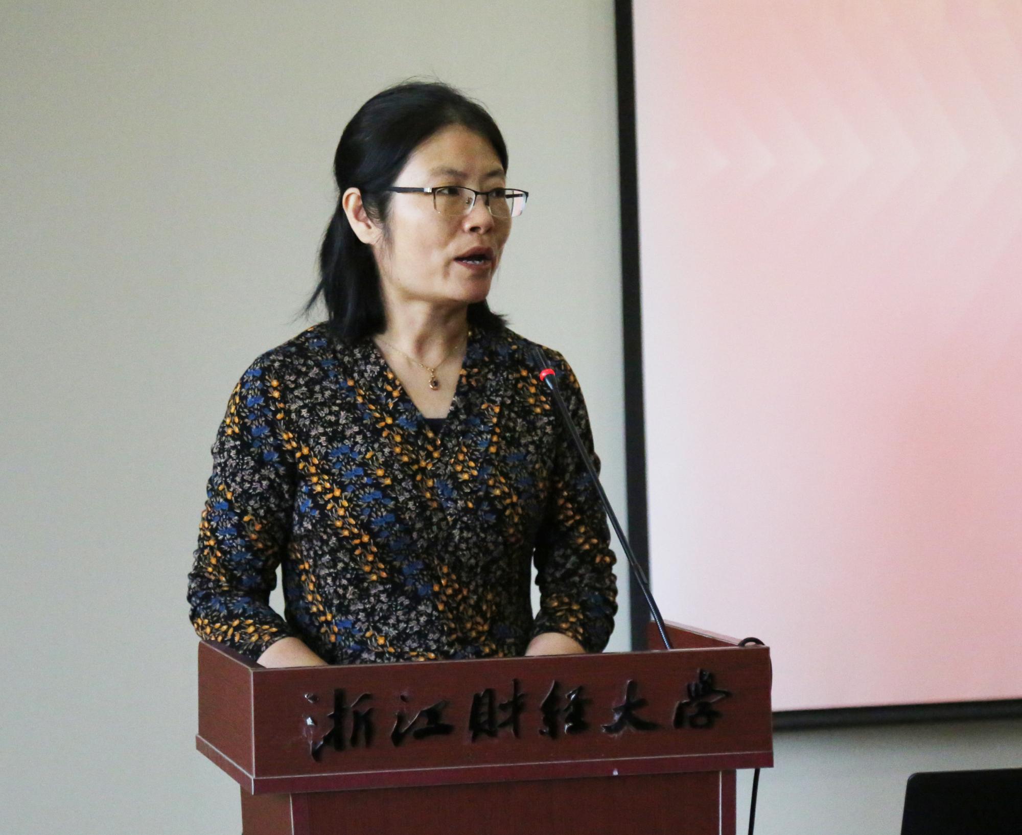 接着,浙江盈阳资产管理股份有限公司董事邵斐校友代表讲话。她提到,“盈阳金融突出贡献奖”已评审7年,很高兴看到七年来学院教学质量不断提高、科研与社会服务建设不断提升、学科专业建设不断突破、育人成果成效显著。她衷心希望在酷爱成人网