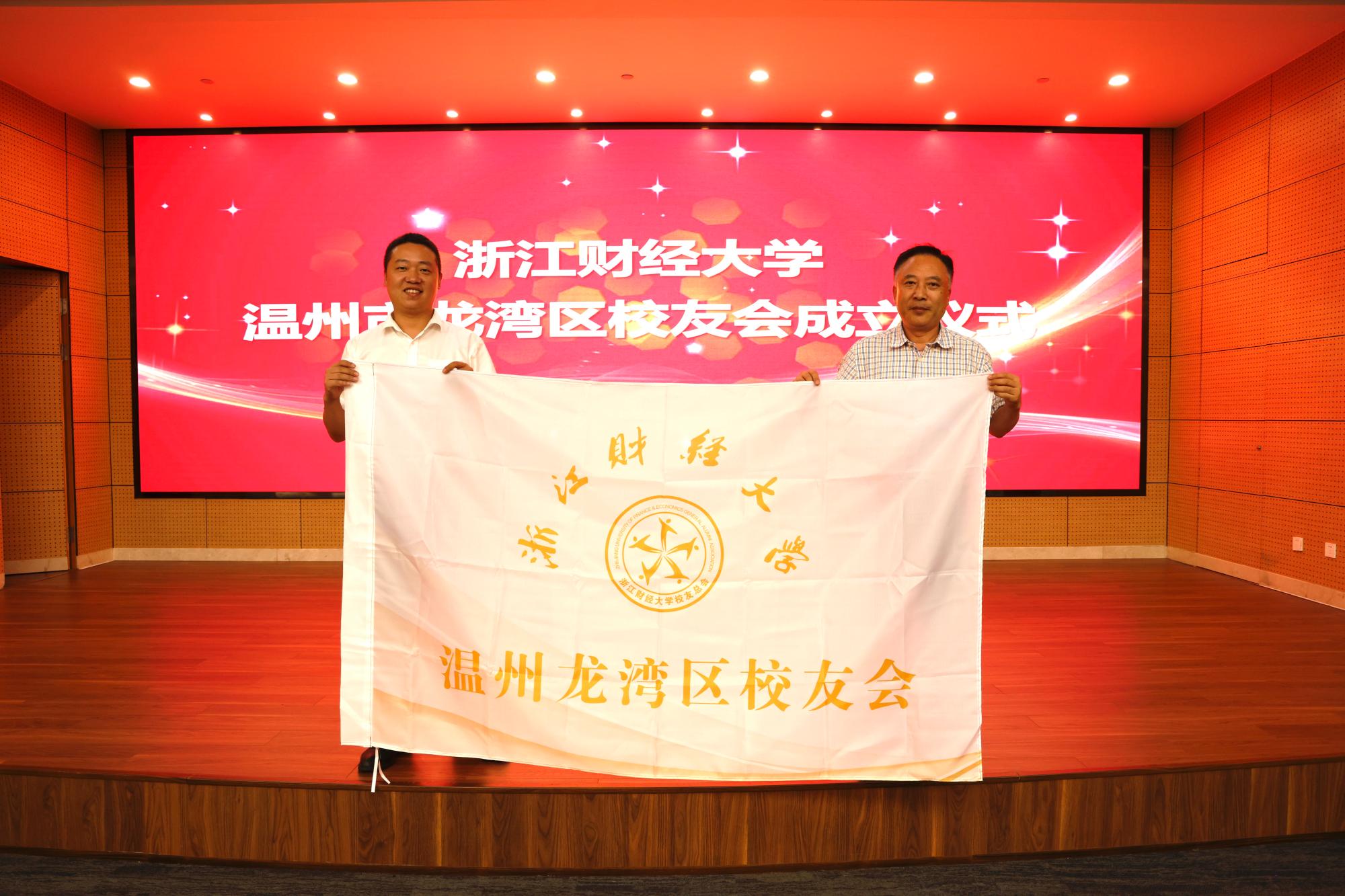 随后,孙莹宣读了理事会名单。蔡叶波当选为会长,施寒毅、黄茫茫、王素珍、王光昌、张瑜瑜(兼任秘书长)、夏维国(兼任常务副秘书长)当选为副会长,蔡小跃当选为常务副秘书长,黄君畅、戈晓菲当选为副秘书长。黄建新向会长、副会长颁发了聘书。温州校友会副会长戴中坚向秘书长、副秘书长颁发了聘书。蔡国金向龙湾区校友会授旗。