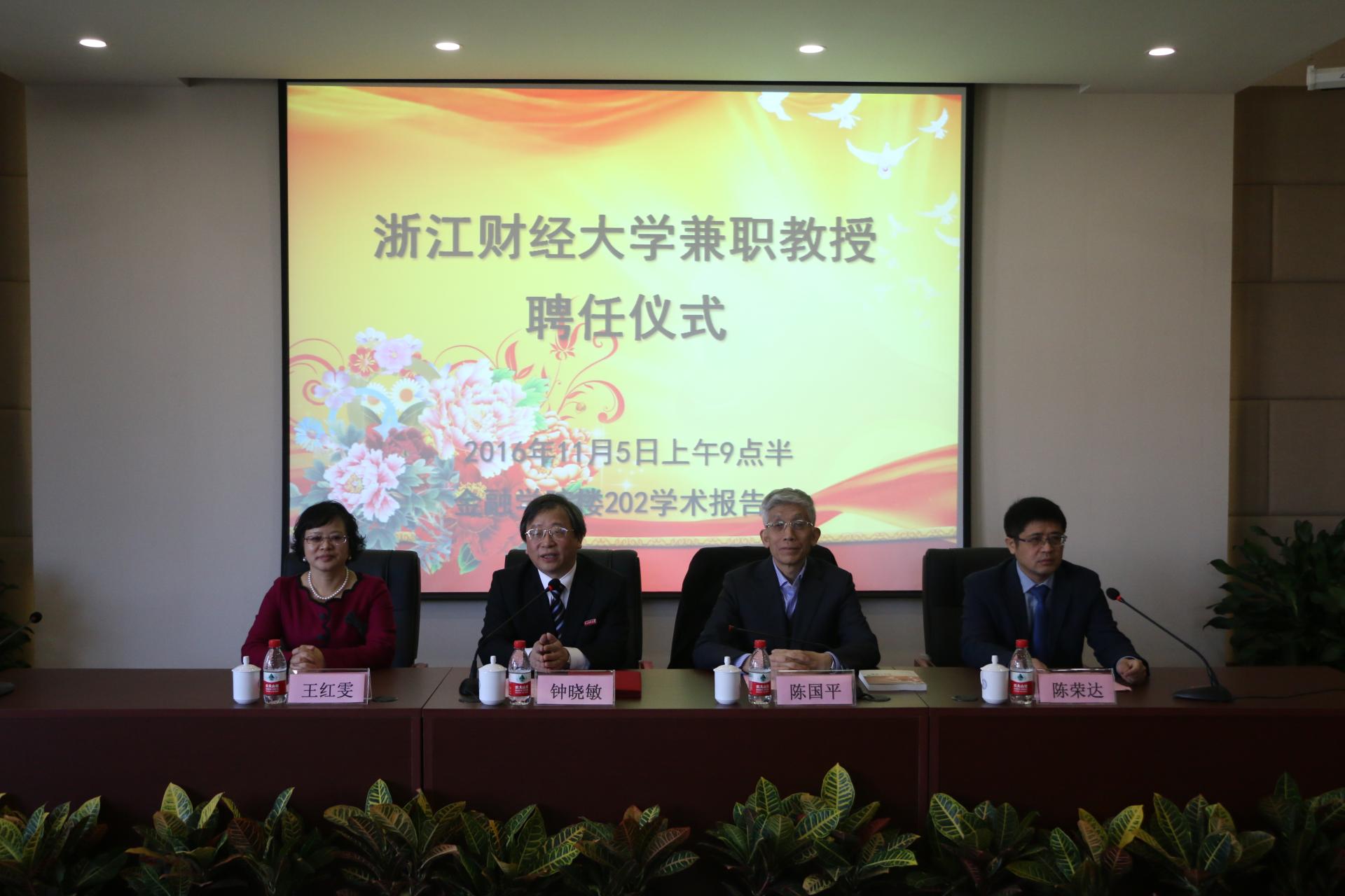 兼职教授的聘任仪式,钟晓敏校长出席并为陈国平先生和浙江省上市公司协会法定代表人王红雯颁发了酷爱成人网