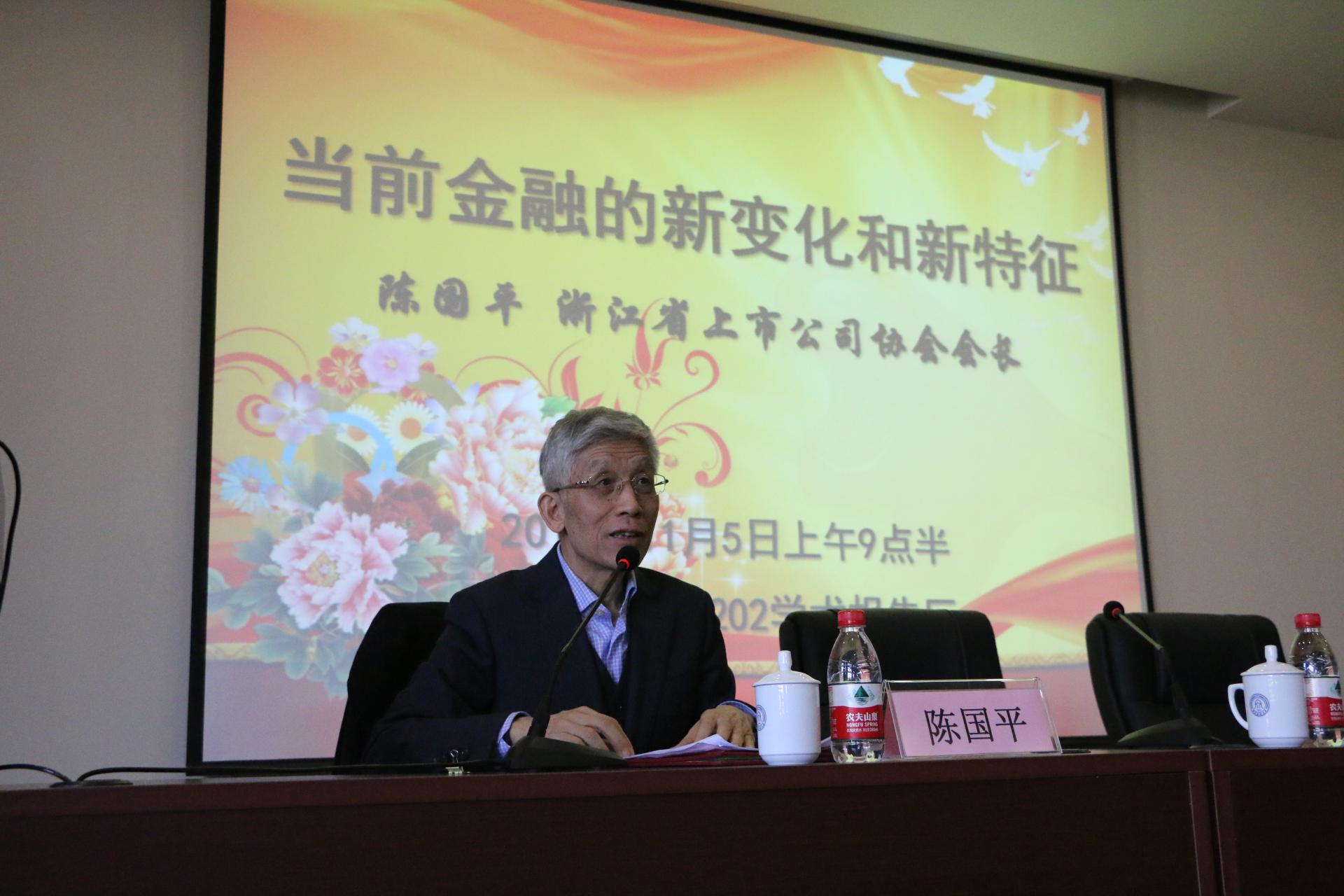 兼职教授的聘书。讲座中,陈国平先生就金融回归实体经济的最终目的、拥抱新金融,强调科技创新、直接金融与间接金融结合、货币政策松紧有度,守住金融风险底线四点进行了详细阐述,使听众受益匪浅。