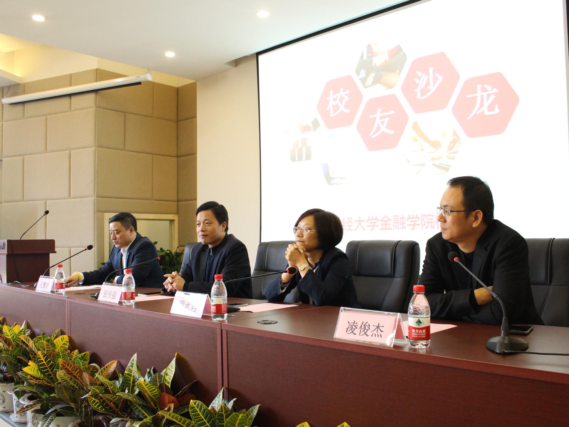 校友会理事会的积极推动下,分别邀请了张伟强(95届校友,杭州欢泰健康管理有限公司高级经济师、执行董事)、戴水君(97届校友,金石资源集团股份有限公司副总裁、董事会秘书)、凌俊杰(00届校友,浙江巴沃资产管理有限公司董事长)三位不同领域的优秀校友,向同学们分享了关于职业规划和创新创业的想法,99届校友、浙江盈阳资产管理股份有限公司总经理孔繁岗先生作为主持人出席。校友沙龙作为一个沟通校友、服务校友、架接起校友与在校师生密切联系的重要平台,既为校友提供了经常性的互动交流平台,更是为校友反哺母校、给在校的同学们树立强大榜样提供了重要途径。
