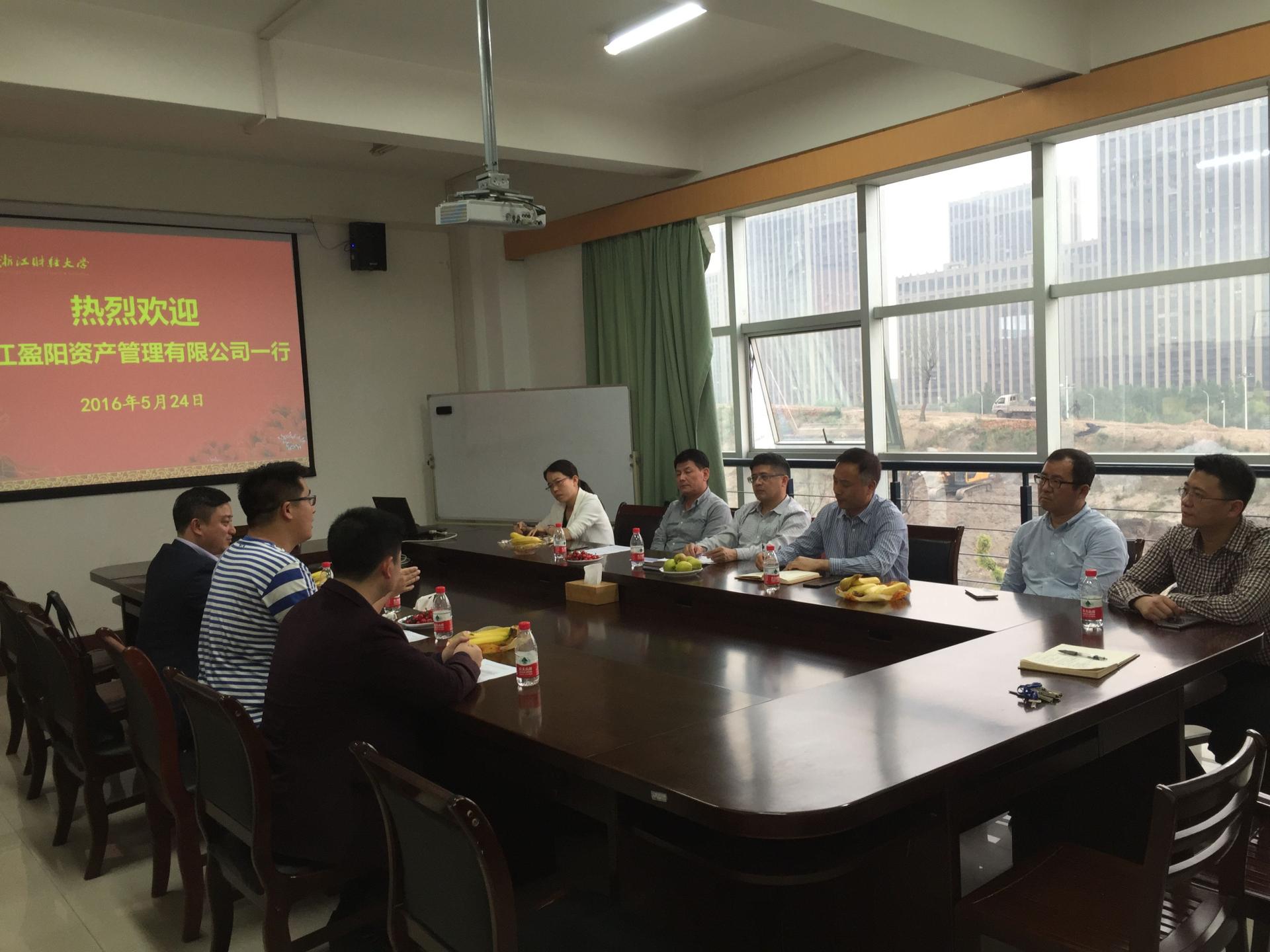5月25日下午,浙江盈阳资产管理股份有限公司楼栋校友、总经理孔繁岗校友、副总经理傅夷校友一行20人莅临酷爱成人网