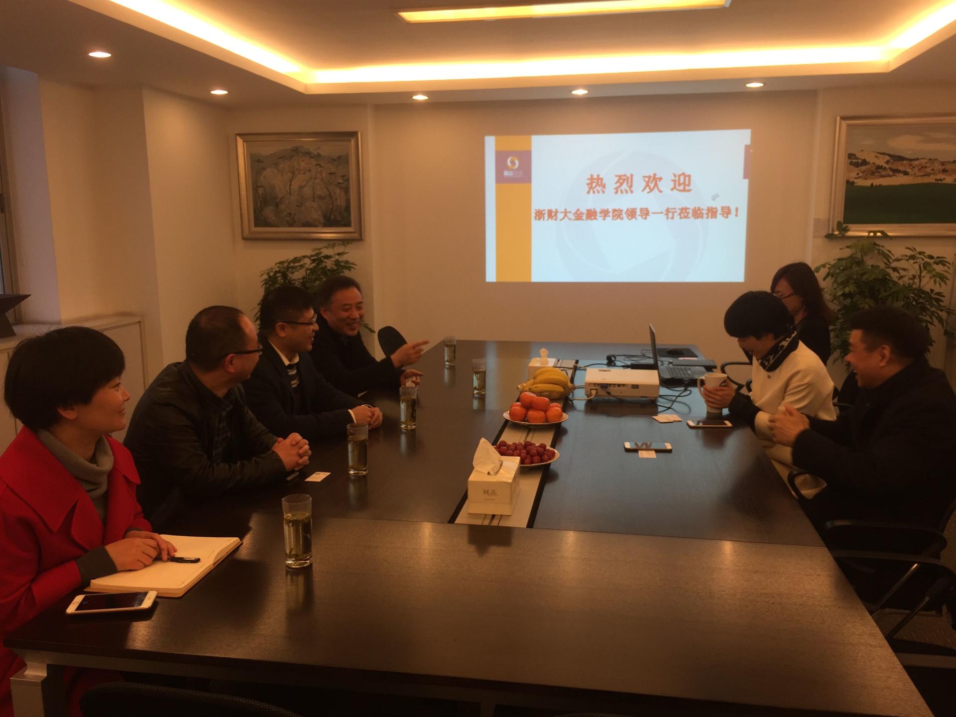 在盈阳资管总部,总经理孔繁岗校友、副总经理傅夷校友热情接待了陈荣达院长、蔡国金书记一行。孔繁岗校友简要介绍了盈阳资管的发展现状、人员构成、管理模式和即将成立的盈阳研究院概况,邀请学院领导参加研究院的成立仪式。双方就战略合作框架协议进行了详谈,并就一些具体合作项目进行深入探讨,达成初步意向。他表示,企业的发展离不开学院的支持,目前公司员工有三分之一都来自财大,希望双方能够进一步开展全方位合作,实现共赢。