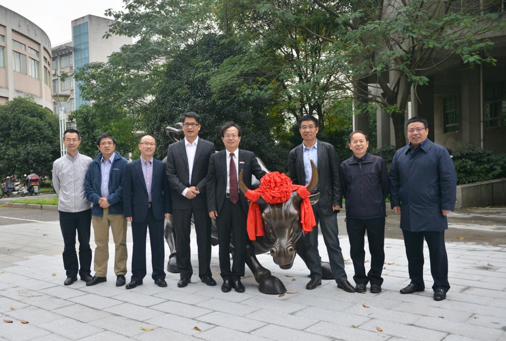捐赠“盈阳牛”雕像的捐赠仪式在学院门口隆重举行。副校长黄建新、院长李连华、党总支书记杨鹰彪、副书记陈伟、副院长陈荣达、校友办李晓峰等领导及优秀校友楼栋先生出席了此次捐赠仪式,浙江盈阳资产管理股份有限公司部分员工和酷爱成人网